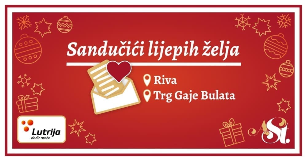 Božićno je vrijeme nezamislivo bez darivanja, a splitski Advent sa sloganom „Ljubav nas spaja“ u organizaciji Turističke zajednice grada Splita i u suradnji s Hrvatskom Lutrijom putem Sandučića lijepih želja vrijednim će nagradama usrećiti autore najljepših božićnih poruka. Ubacivanjem želja za nadolazeće blagdane građani mogu osvojiti mobitel Samsung Galaxy S10e 128 GB dual SIM, tablet Samsung Galaxy Tab S4 T830 64 GB te pametni sportski sat Samsung Galaxy R800, kao i tri utješna poklon paketa.