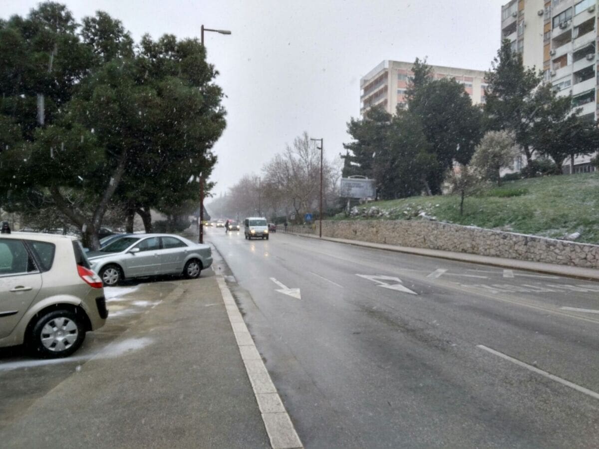 Tanak sniježni pokrivač stvorio se u dijelovima Splita. Temperatura od 2 stupnja ispod nule bila je dovoljna da se snježni pokrivač zadrži na svim površinama. Dok je nekima snijeg stvorio nevolje, nekima je pak priredio veselje.