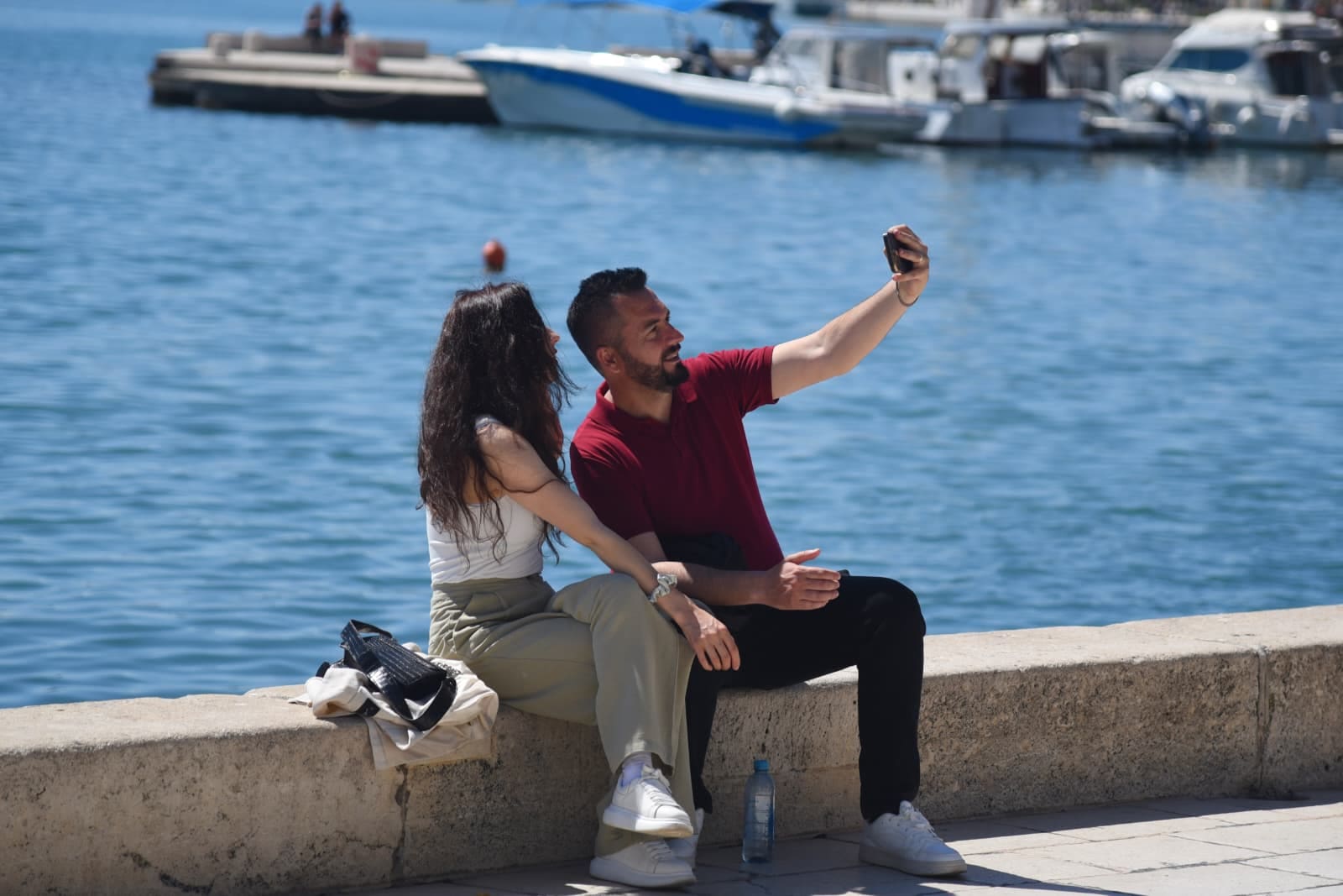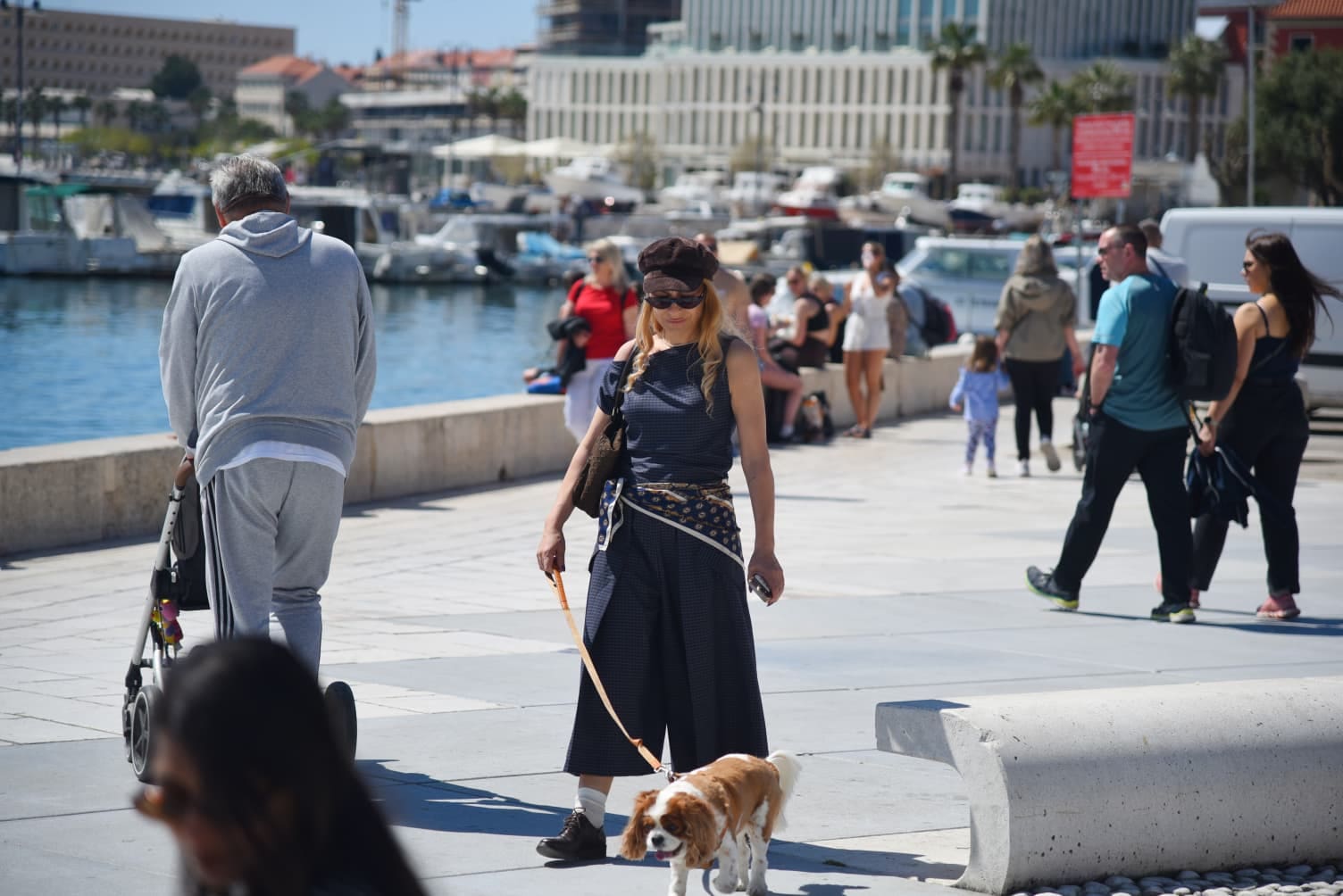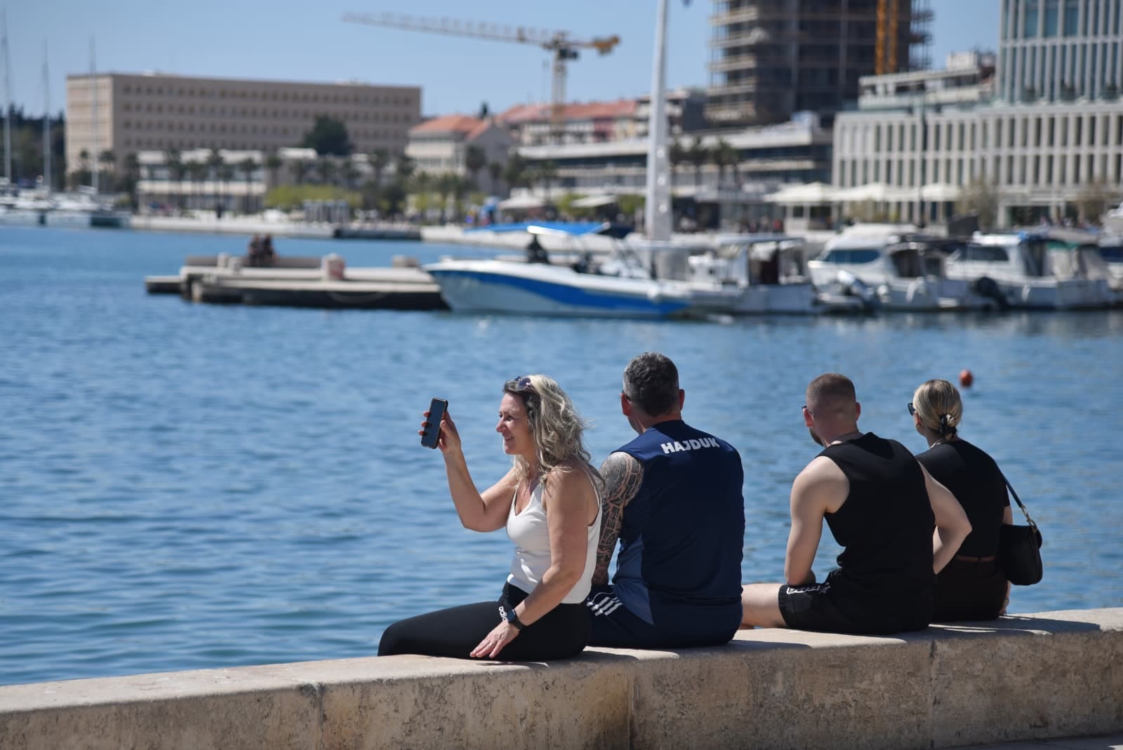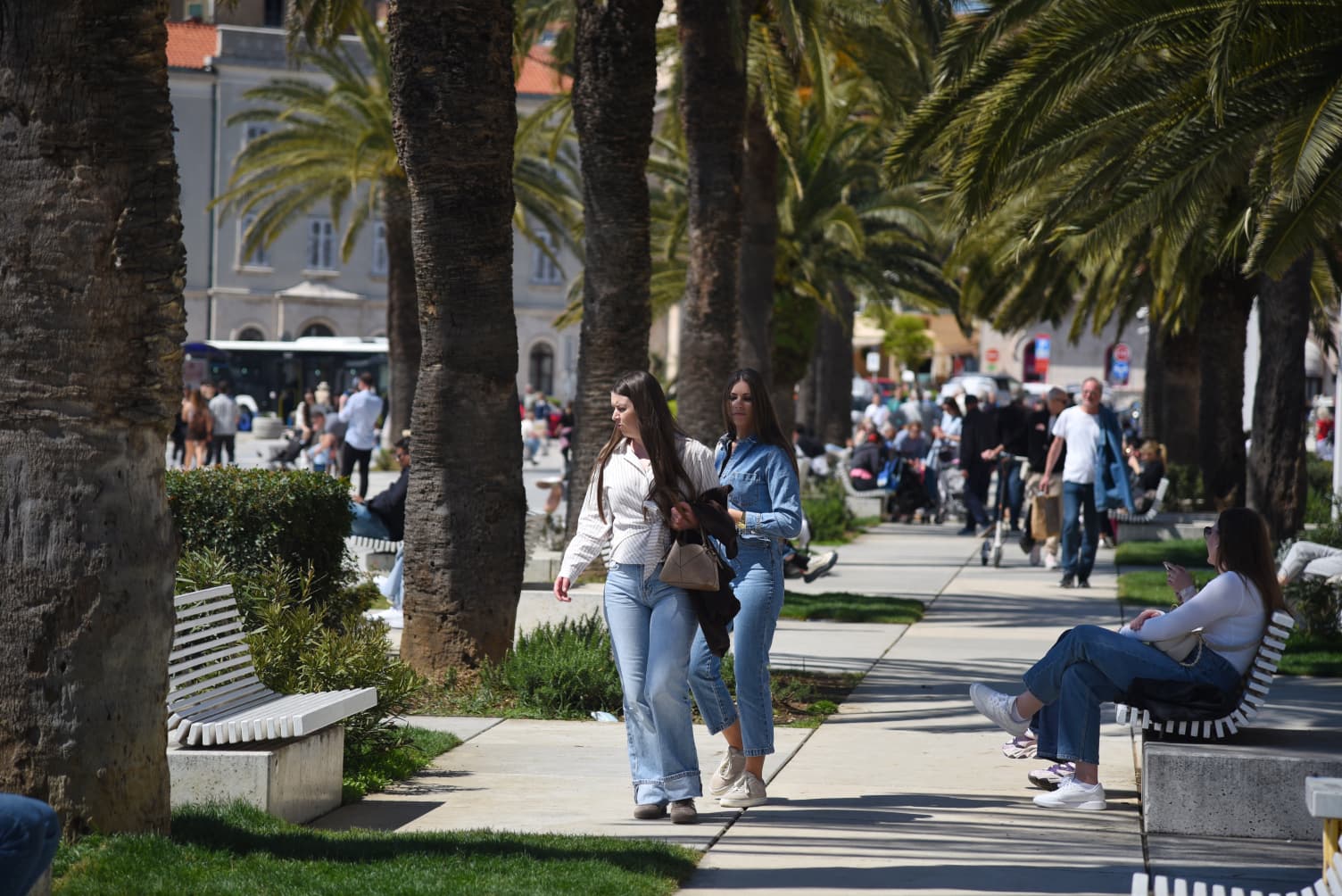 Temperatura je oko dvadesetak stupnjeva, a splitska Riva danas je prepuna turista koji uživaju na suncu i na terasama obližnjih kafića.