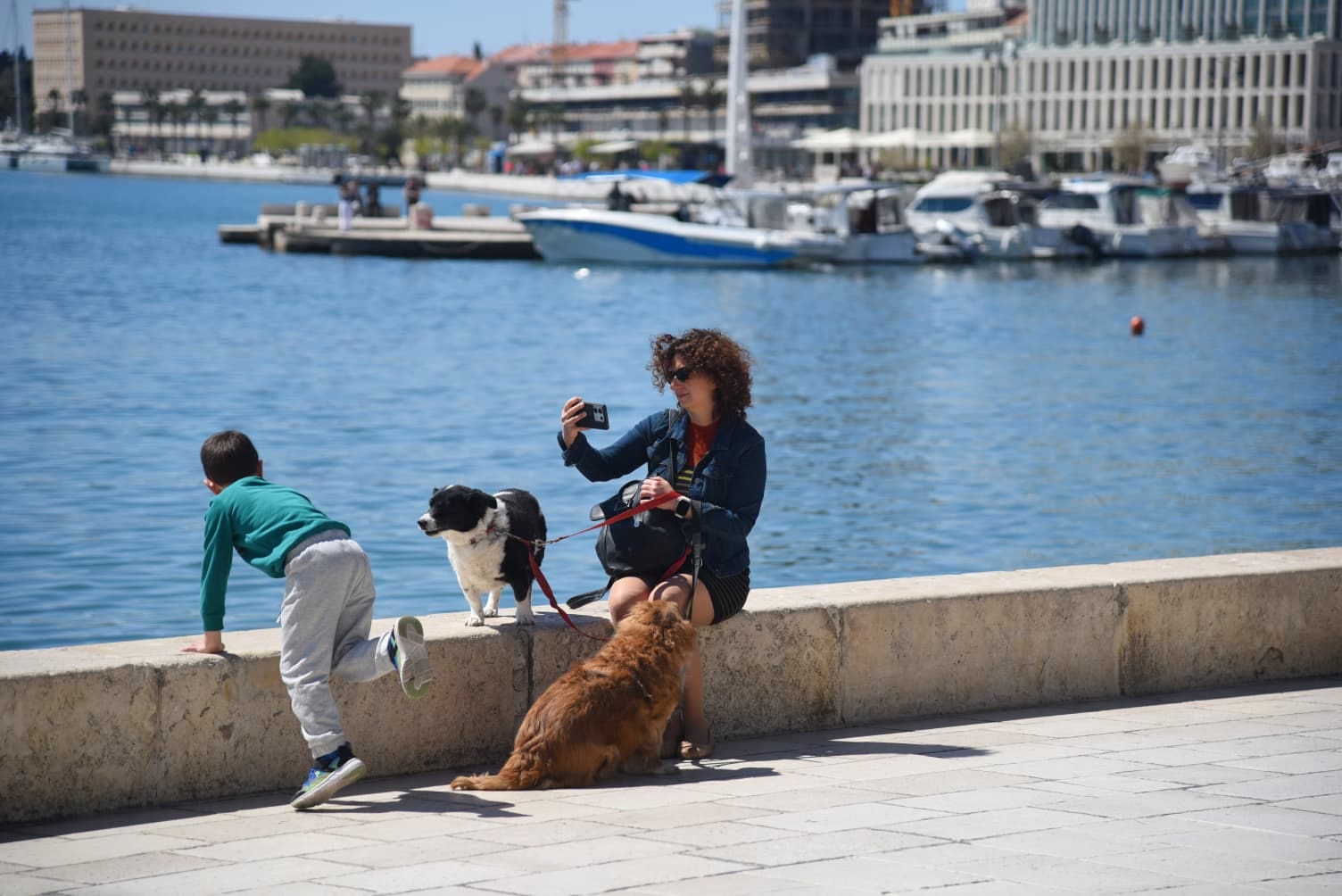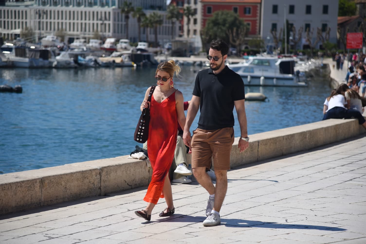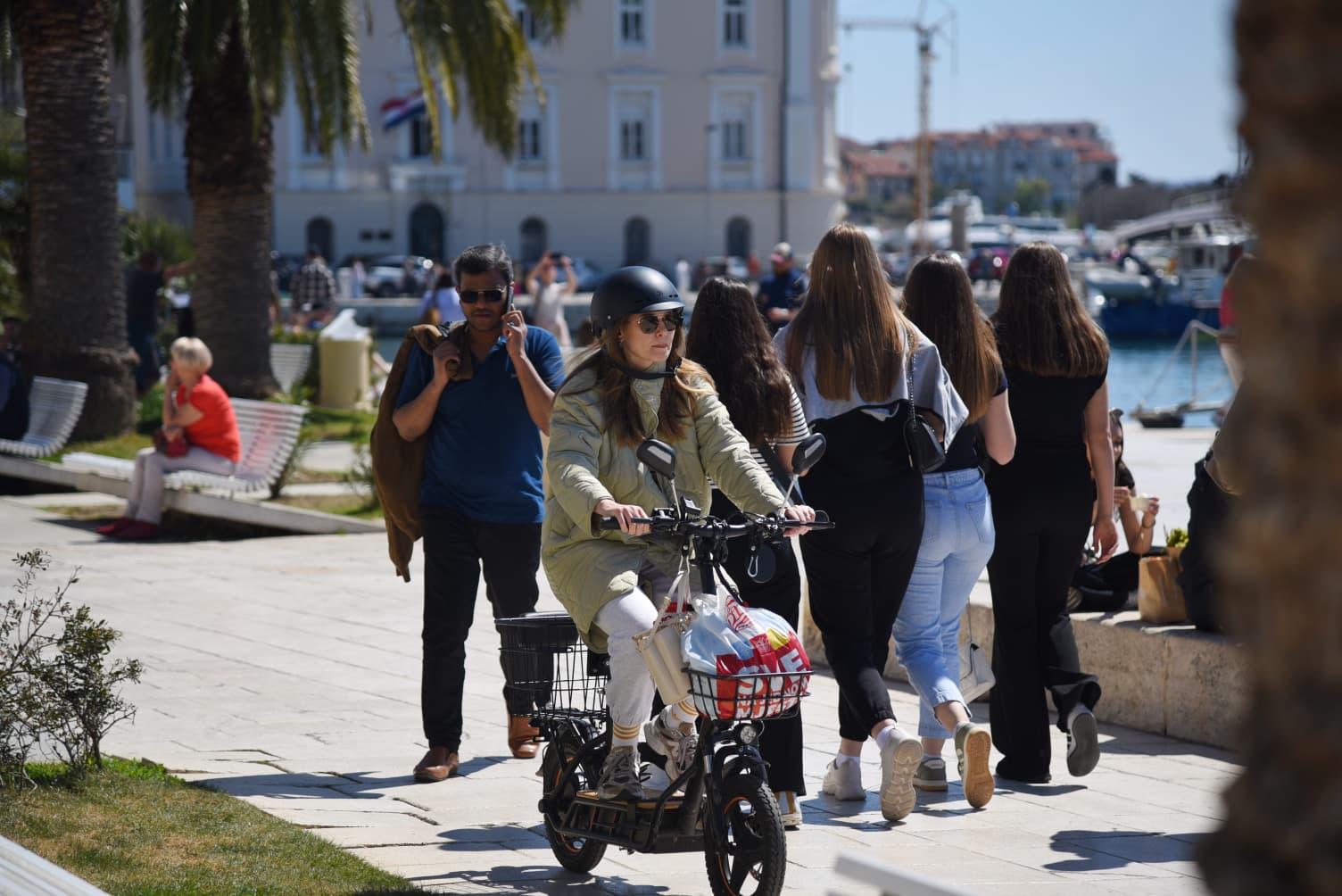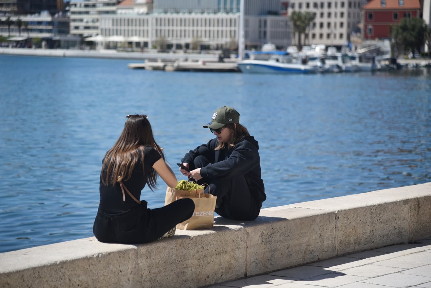 Temperatura je oko dvadesetak stupnjeva, a splitska Riva danas je prepuna turista koji uživaju na suncu i na terasama obližnjih kafića.
