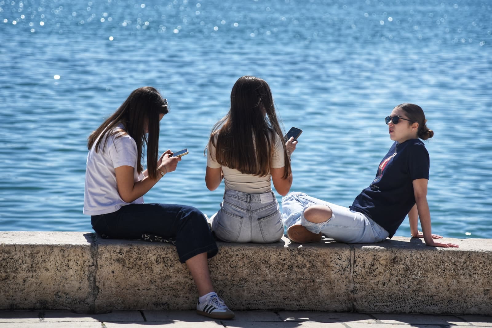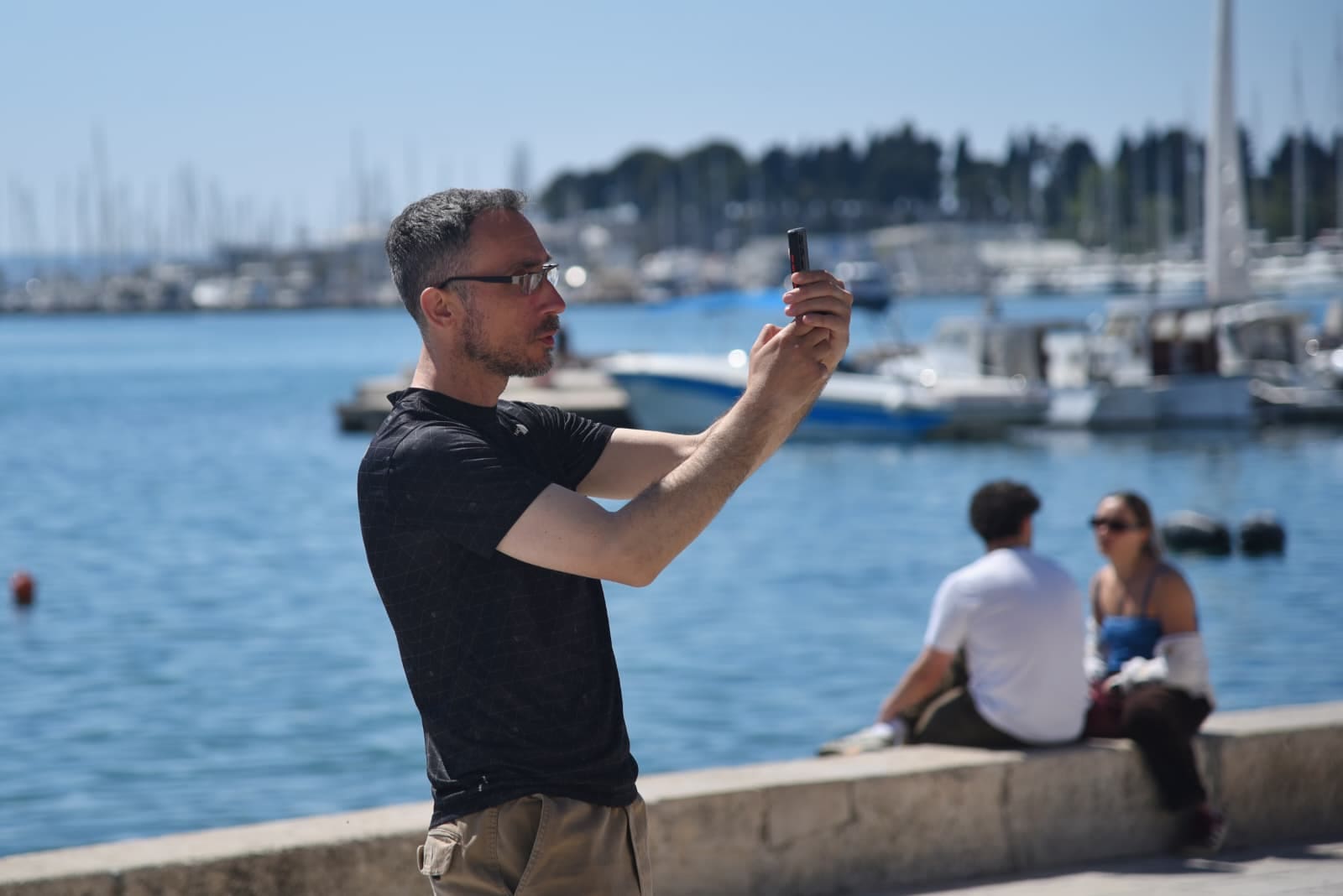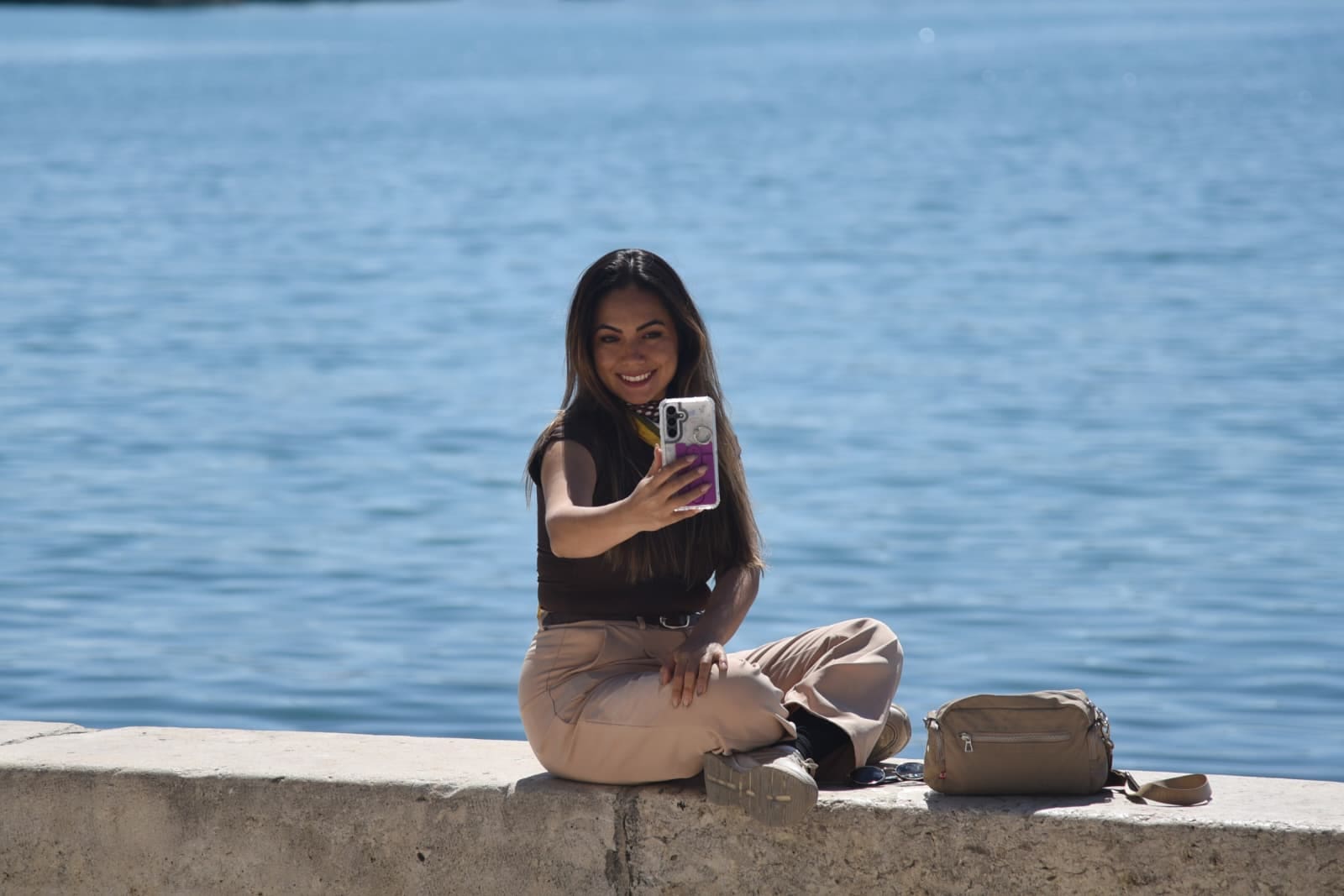 Dio turista voli sjesti na zidić kako bi upili vitamin D, a po svemu sudeći, selfi je najdraža fotografska opcija.