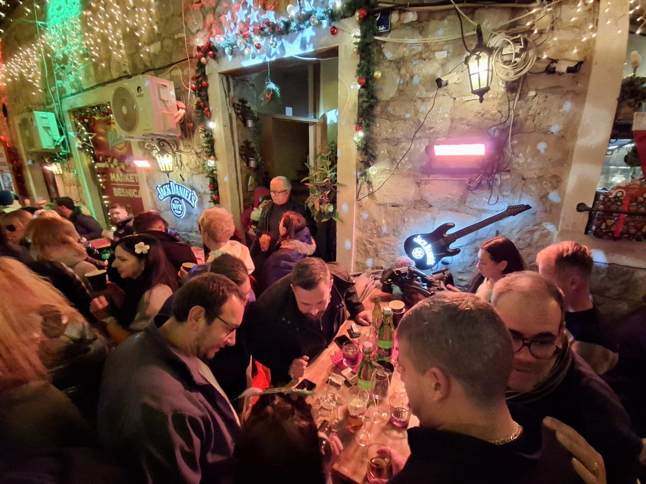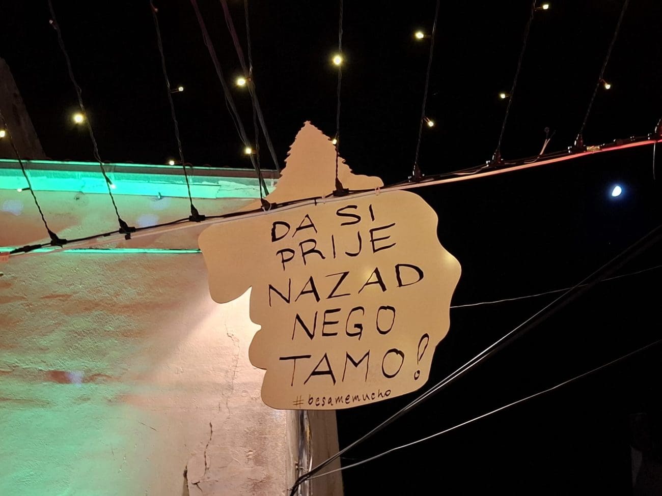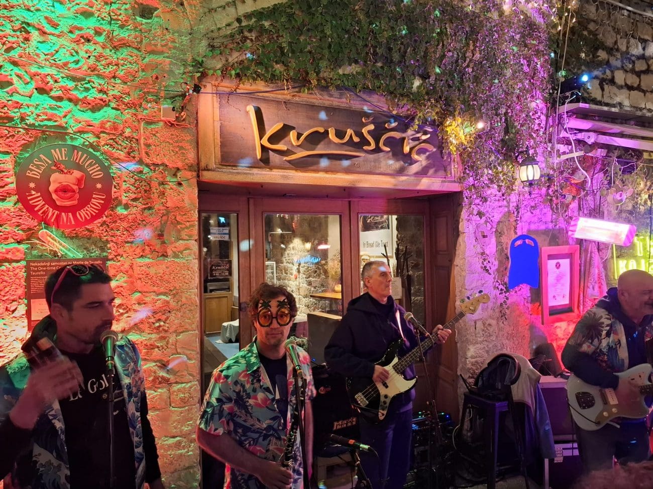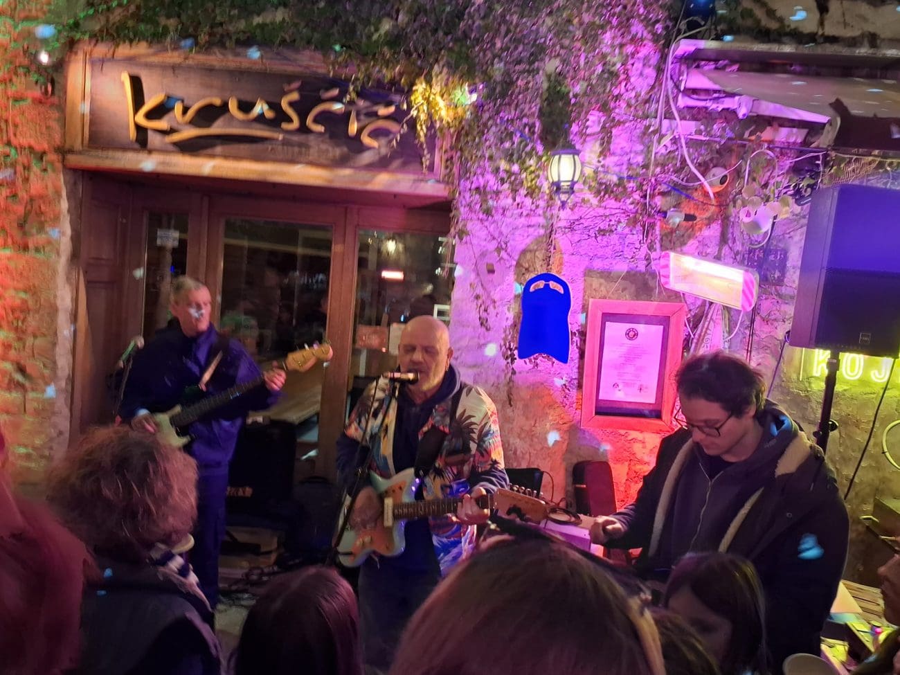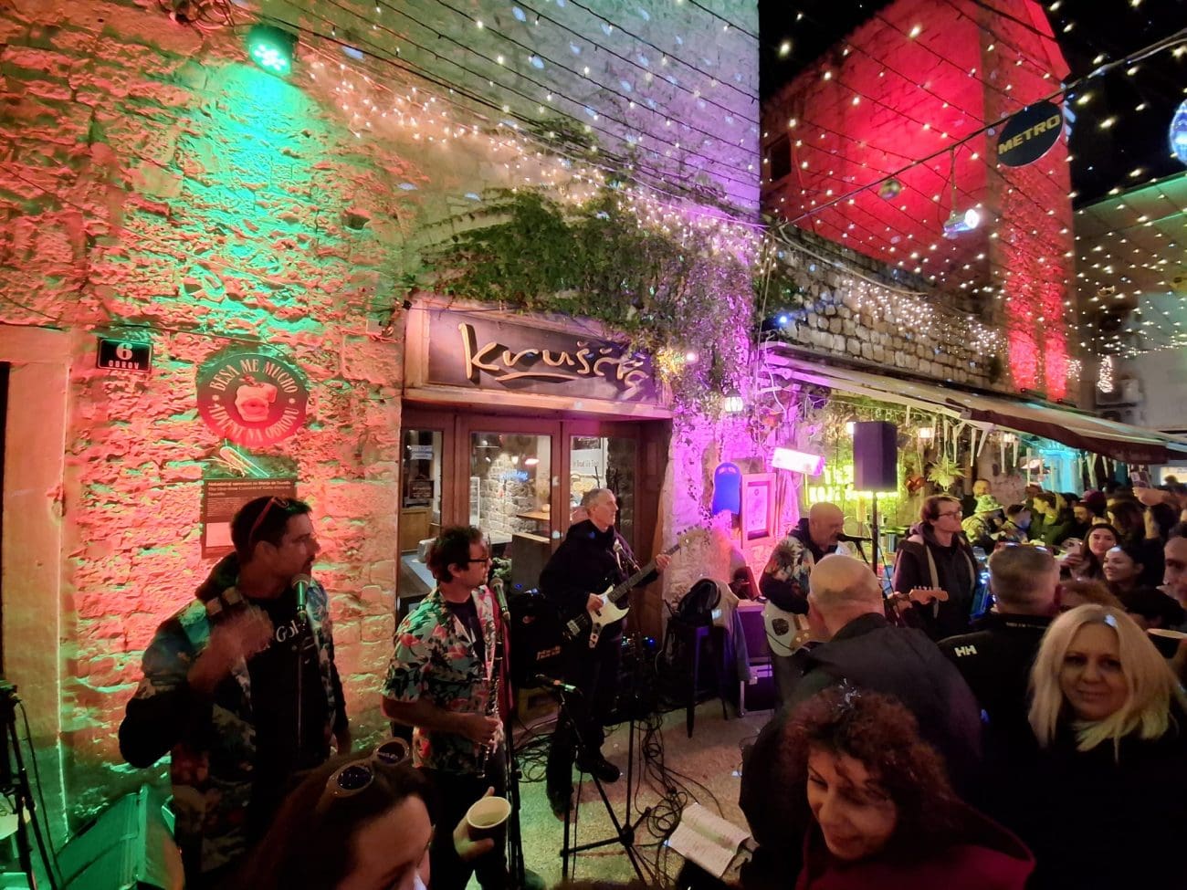 Svi stolovi u prvom redu odavno su rezervirani za nastup benda Šo!Mazgoon, koji je već započeo svoj koncert. Ulica je krcata, atmosfera je vesela i nesvakidašnja, a mi donosimo dio večerašnjeg ugođaja.