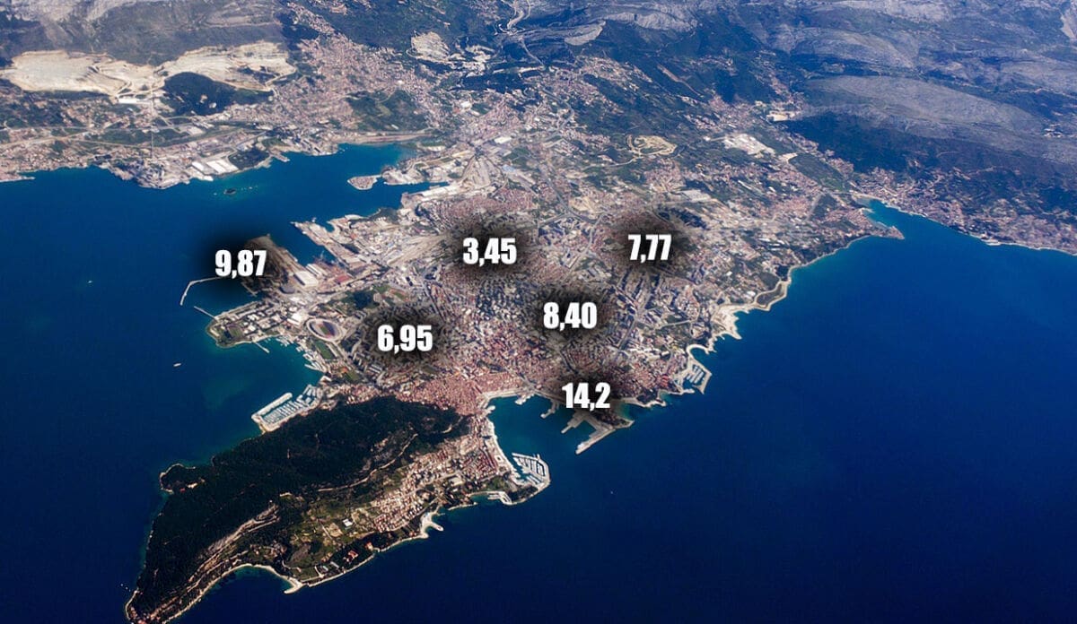 Danas su vrijednosti parametra "mutnoća" za grad Split:
