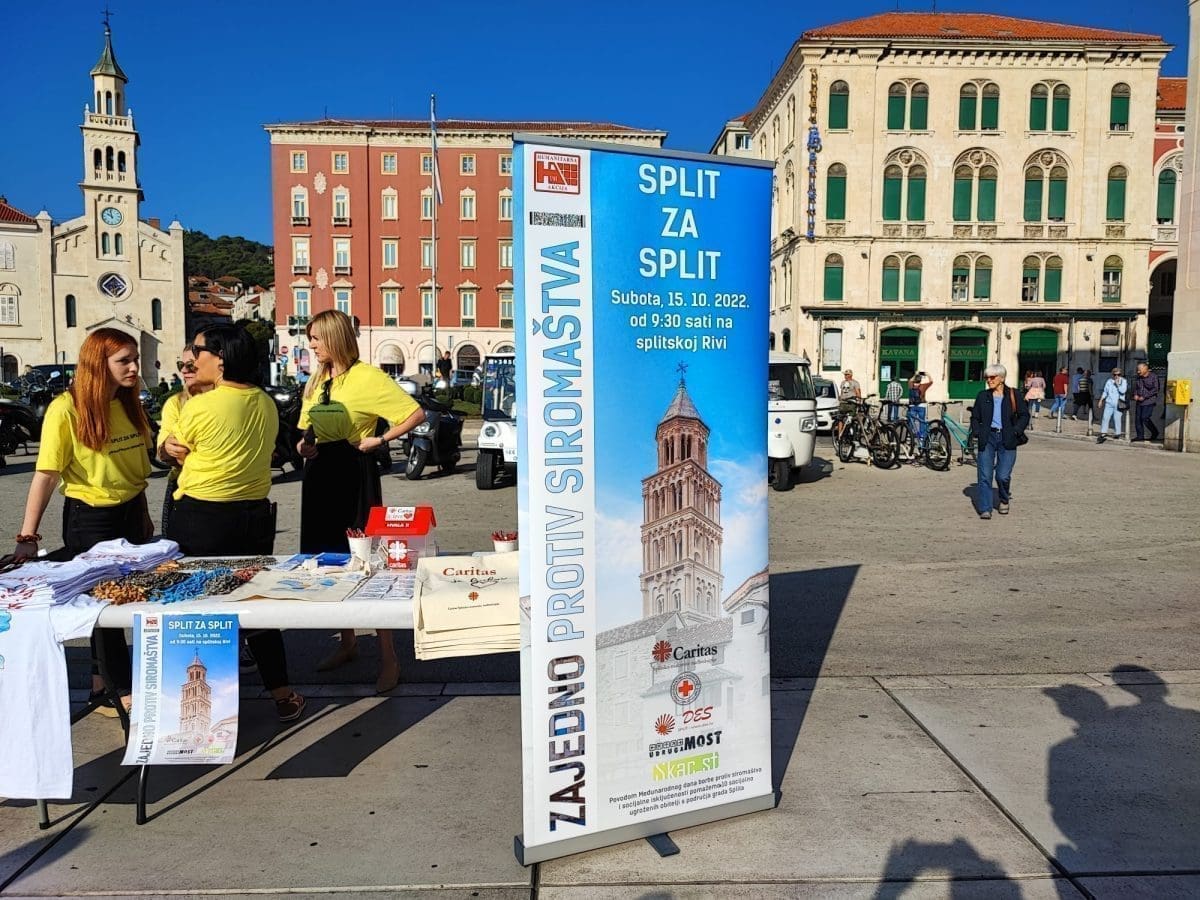 Akcija "Split za Split" - Zajedno protiv siromaštva započela je u 9:30 na splitskoj Rivi, u zajedničkoj organizaciji Caritasa Splitsko - makarske nadbiskupije, Gradskog društva Crvenog Križa Split, Udruge SKAC Split, Udruge MoSt i ustanove DES.
