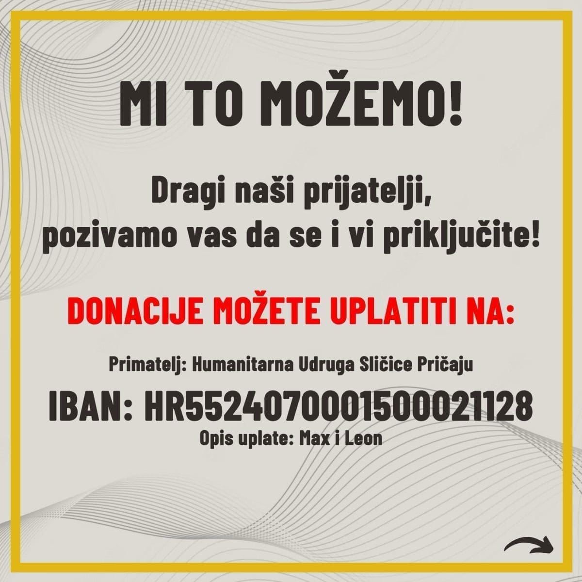 Humanitarno neprofitna udruga 'Sličice pričaju', koja djeluje pod palicom našeg kolumnista Luke Kanaeta i njegovih Velikih prijatelja, pokrenula je humanitarnu akciju 'Za Maxa i Leona' uz podršku stranica 'Nogometne Ikone' i 'Bog je tu'. Prvi je to državni projekt ove udruge, o kojoj bi se mogle mnoge stranice ispisati, a koji je odobren od strane Vlade Republike Hrvatske.