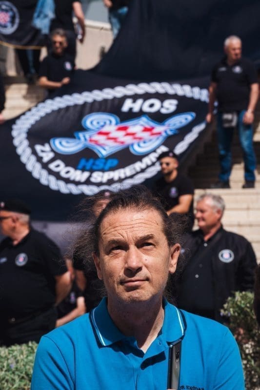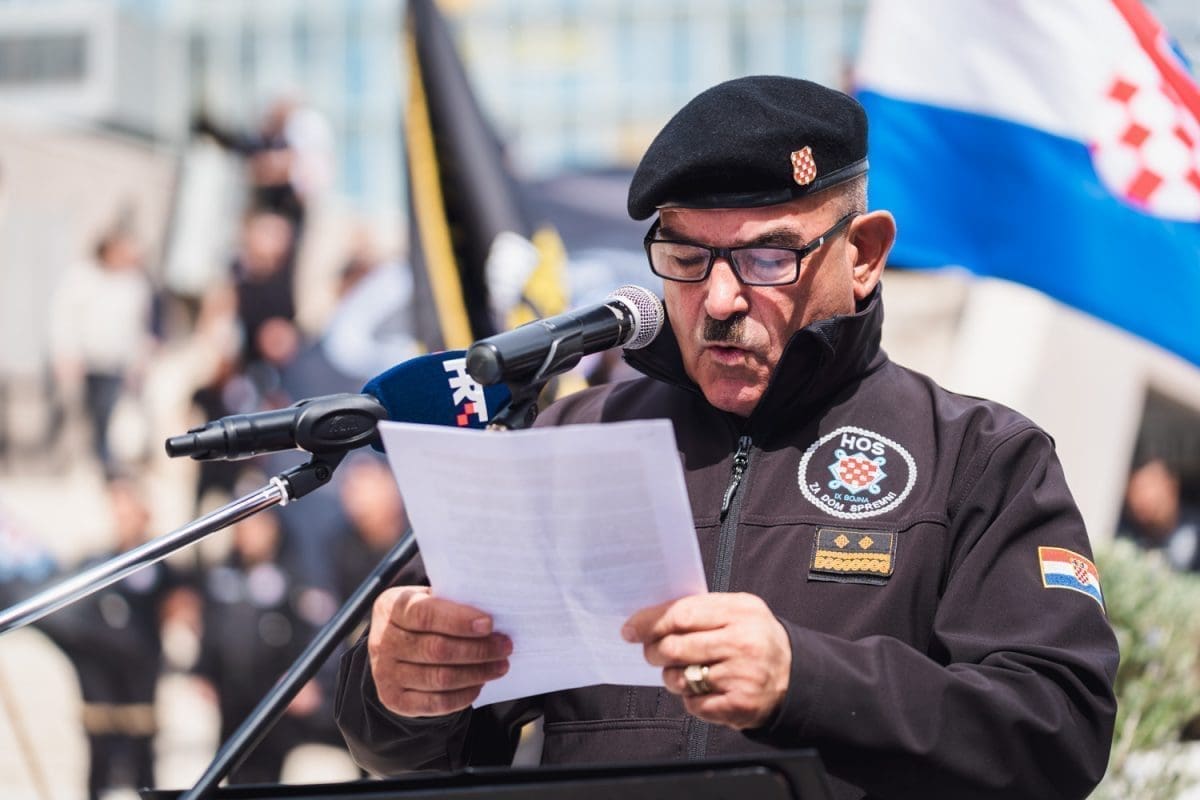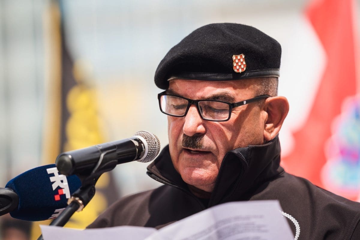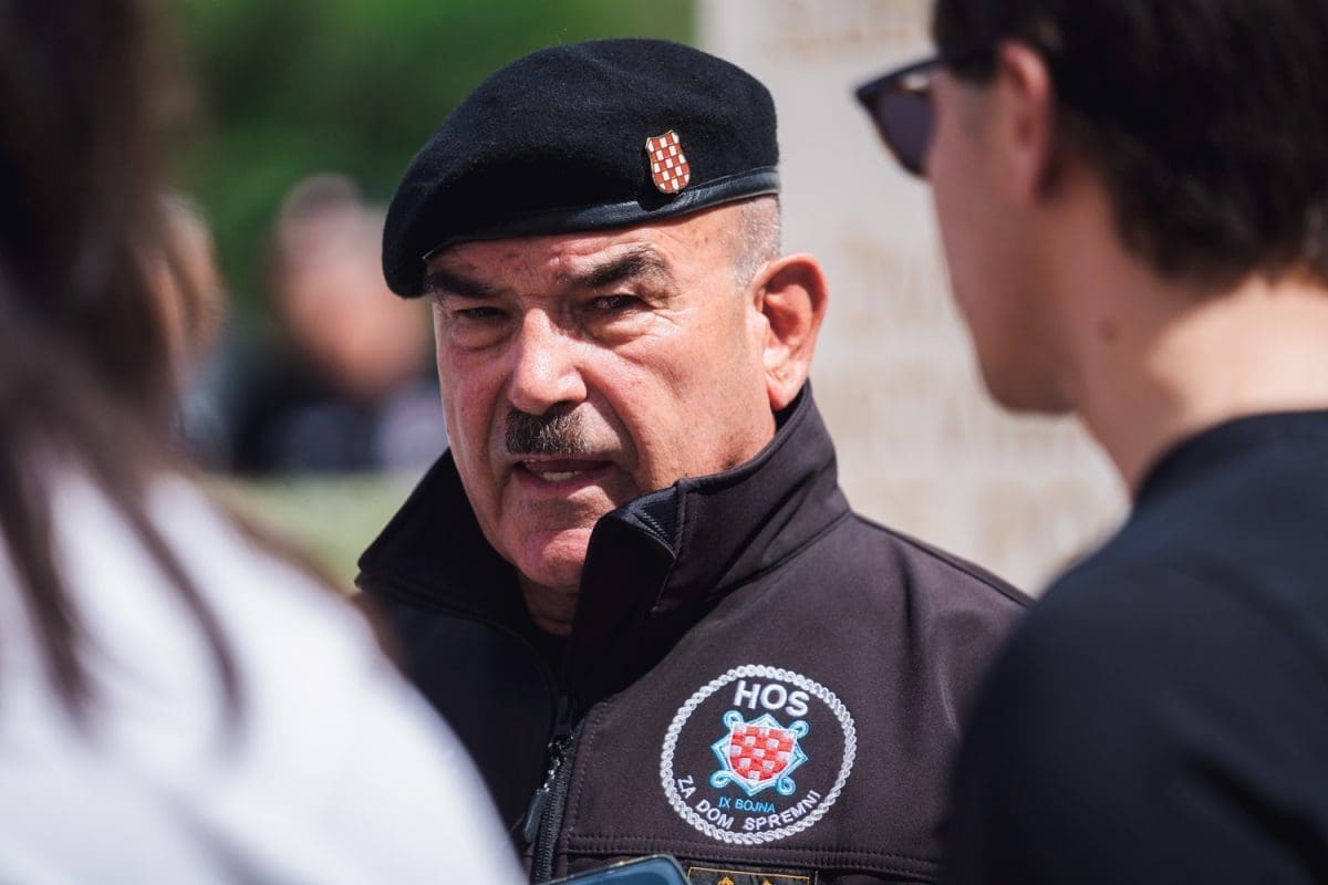 "Zašto se klanjamo i služimo našim najgorim protivnicima. Nema obljetnice na kojoj neke vođe ne zovu ovo čudovište od slučajnog predsjednika države. Sjetite se njegove izjave da bojnu HOS-a treba baciti u smeće. Kako je ovo slučajna država i bezbroj uvreda i gluposti. Sjetite se njegovog komunističkog pandura Ranka Ostojića koji je batinao invalide u crkvi sv. Marka, koji je zločinački i kukavički rušio ovaj spomenik pred kojim stojimo, oltar za poginule HOS-ovce.