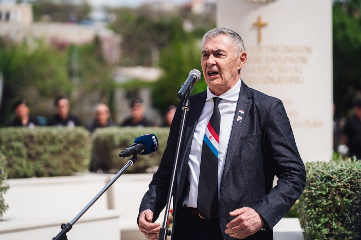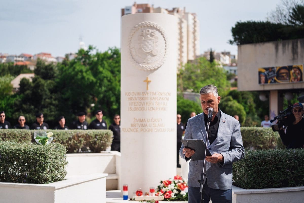 "Crveni su bili i ostali protivnici slobodne Hrvatske i nikada nam neće oprostiti što smo im srušili Jugoslaviju. Promjenimo smjer kojim ide lijepa naša domovina. Nas vodi Bog, a njih smrt. Nas vodi ljubav, a njih mržnja. Mi opraštamo njihove zločine, a oni nas zovu fašistima. Ovdje su pali golubovi bijeli, a pali su jer su bili za dom spremni.