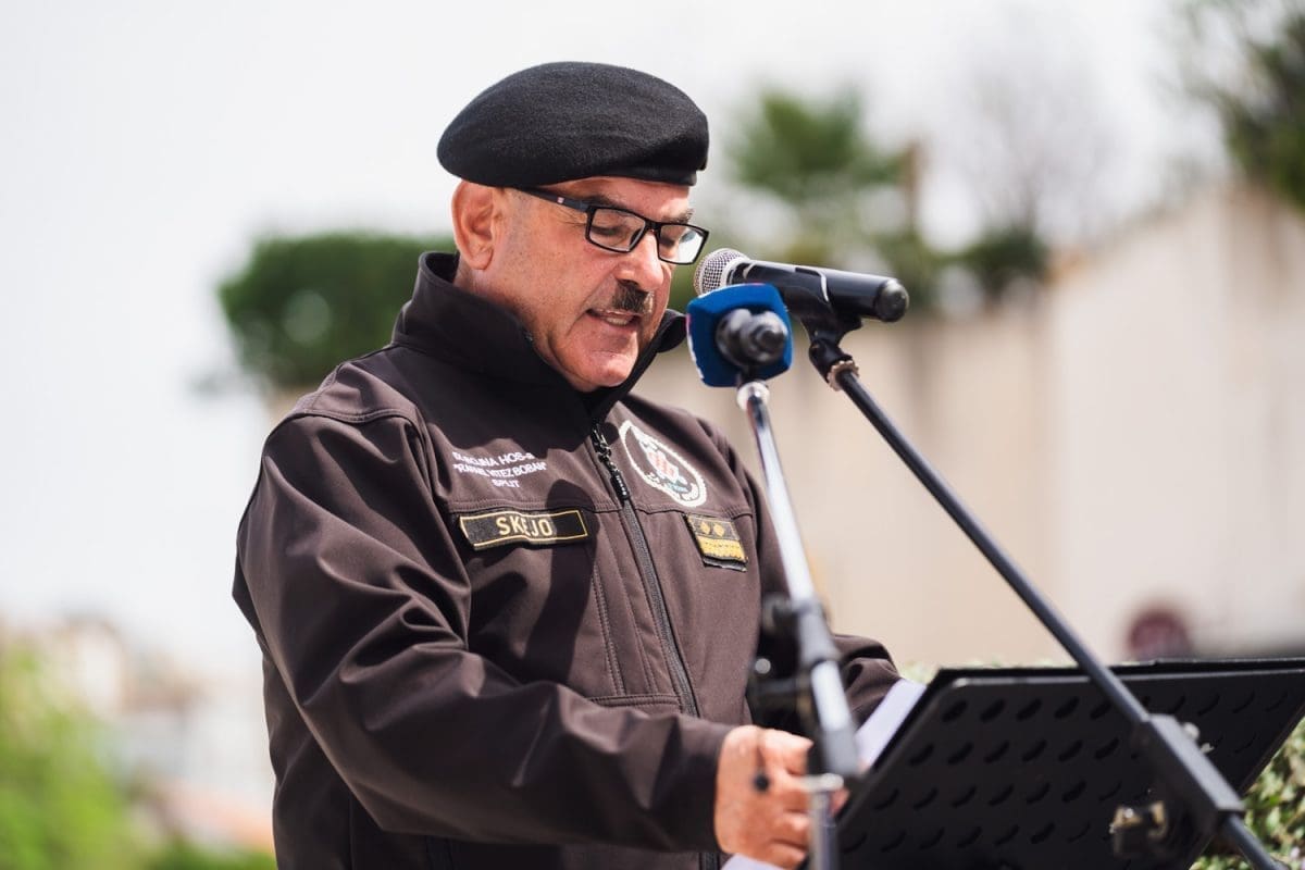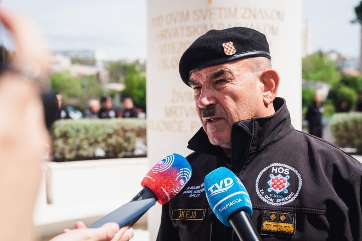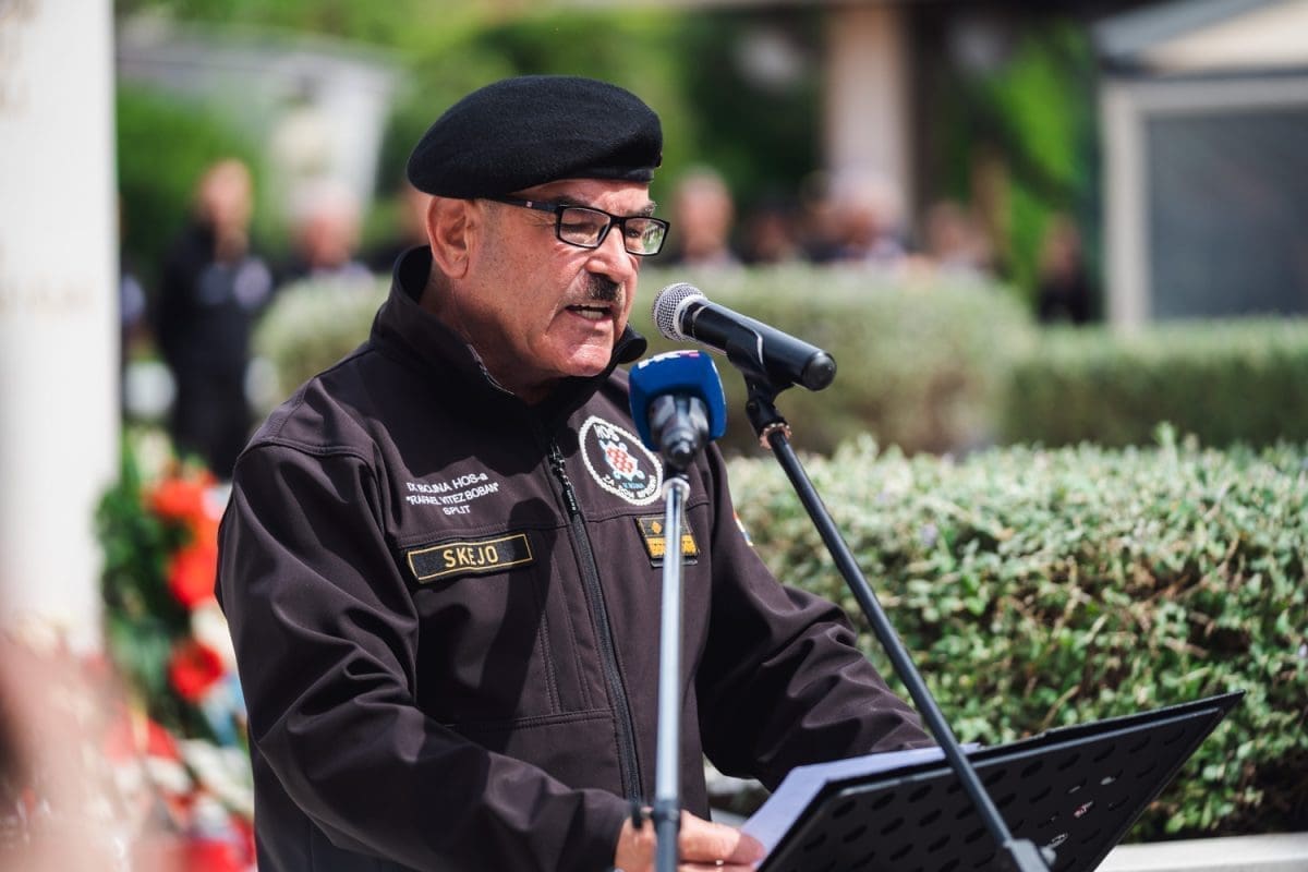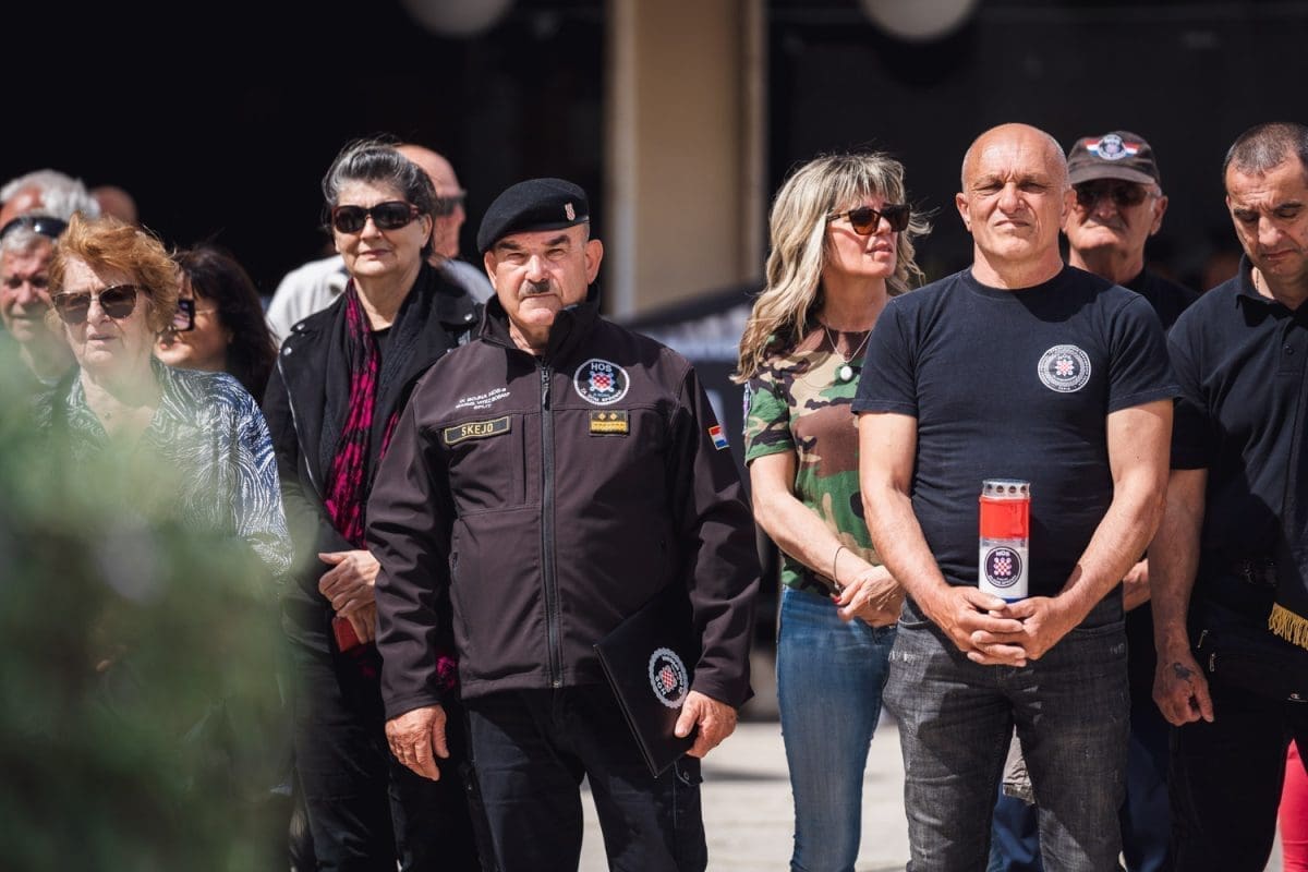 Nakon polaganja vijenaca i svijeća oko spomenika, mnoštvu koje je bilo obučeno u crno, uz pripadnike mladeži poredanih jedan do drugoga stajao je i Marko Skejo. Nakon ceremonije, obratili su se prisutnima bojni zapovjednik HOS-a Miće Ćuk te ratni zapovjednik i predsjednik Udruge XI. bojne HOS-a Rafael vitez, Marko Skejo.