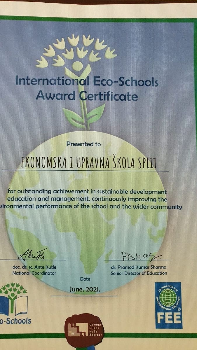 Njihova profesorica Anita Davorka Kružičević istaknula je važnost Erasmusovog programa Poduzetništvo - misli zeleno. - Naši učenici su sadili stablo, skupljamo papir i radit ćemo na tome da razvijamo eko patrole. Oni kontroliraju što je s otpadom, kontrolirat će WC za učenike, curi li voda, što je sa svjetlom kada se izgasi, što je s klimama, jesu li računala izgašena, što je sa svjetlosnim zagađenjem. Skupljamo i prodajemo ambalaže i doniramo potrebitima. Učimo biti humani, iako smo Ekonomska škola, učimo svoje učenike da nije sve u novcu. Primjerice, termometre smo kupili tako što smo prodali stare udžbenike, nismo od nikoga tražili novac. U Zadruzi izrađujemo dalmatinske suvenire - kazala nam je Kružičević, zaključivši da škola ide prema ideji da učenici misle zeleno.