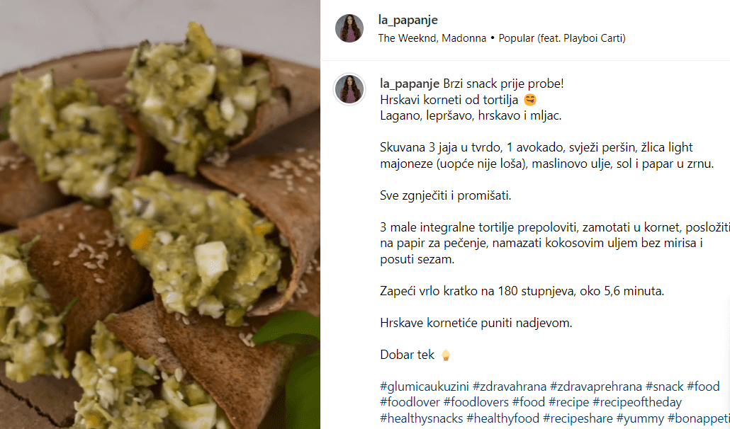 A sudeći prema objavama na Instagram profilu, Ivana zbilja bira zdravije namirnice što nikako ne znači da su i dosadne upravo iz gore navedenog razloga. Listajući njen kulinarski profil ne možete ne primijetiti da su joj najdraže jelo upravo tortilje. Otkrila nam je što je to u njima toliko posebno da ih je do sada pripremala na nebrojeno načina.