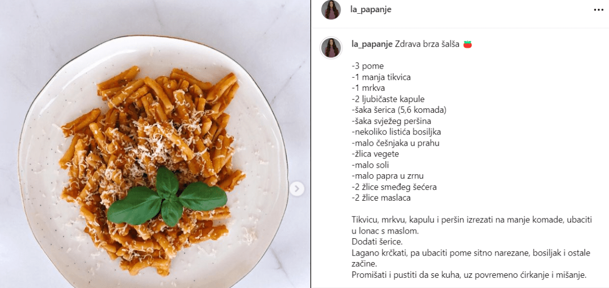 Ma vjerujemo, vjerujemo jer gledajući sve te silne fotografije hrane koju je Ivana pripremila ne možemo ne pomisliti da se iza kreatora tih jela krije veliki gurman koji zbilja uživa u svakom detalju pripreme tih istih jela. A primjećuju to i pratitelji njenog 'lapapanja' koji svojim komentarima hvale Ivanu i žele još i još novih recepata u kojima će i sami uživati.