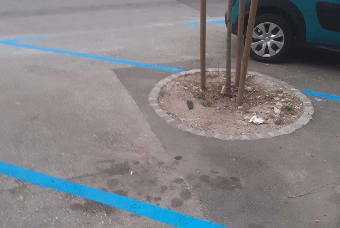 "Slika broj 1 prikazuje uredno parkirano stablo. Slika broj 2 prikazuje nesavjesne stableće pojedince", napisala je Visković uz priložene fotografije na kojima se vidi da su mjesta za parkiranje ucrtana i preko područja zasaženih i ograđenih mladih stabala.