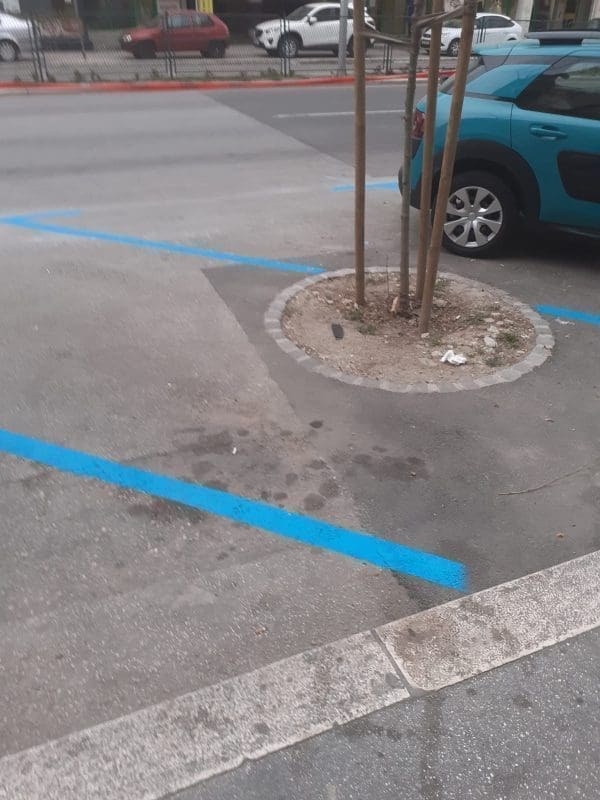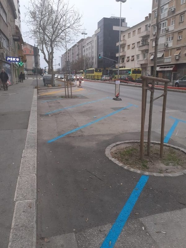 Tamara Visković, gradska vijećnica platforme Možemo, uočila je danas zanimljivost na ovom parkiralištu nakon označavanja parkirališnih mjesta plavim linijama.