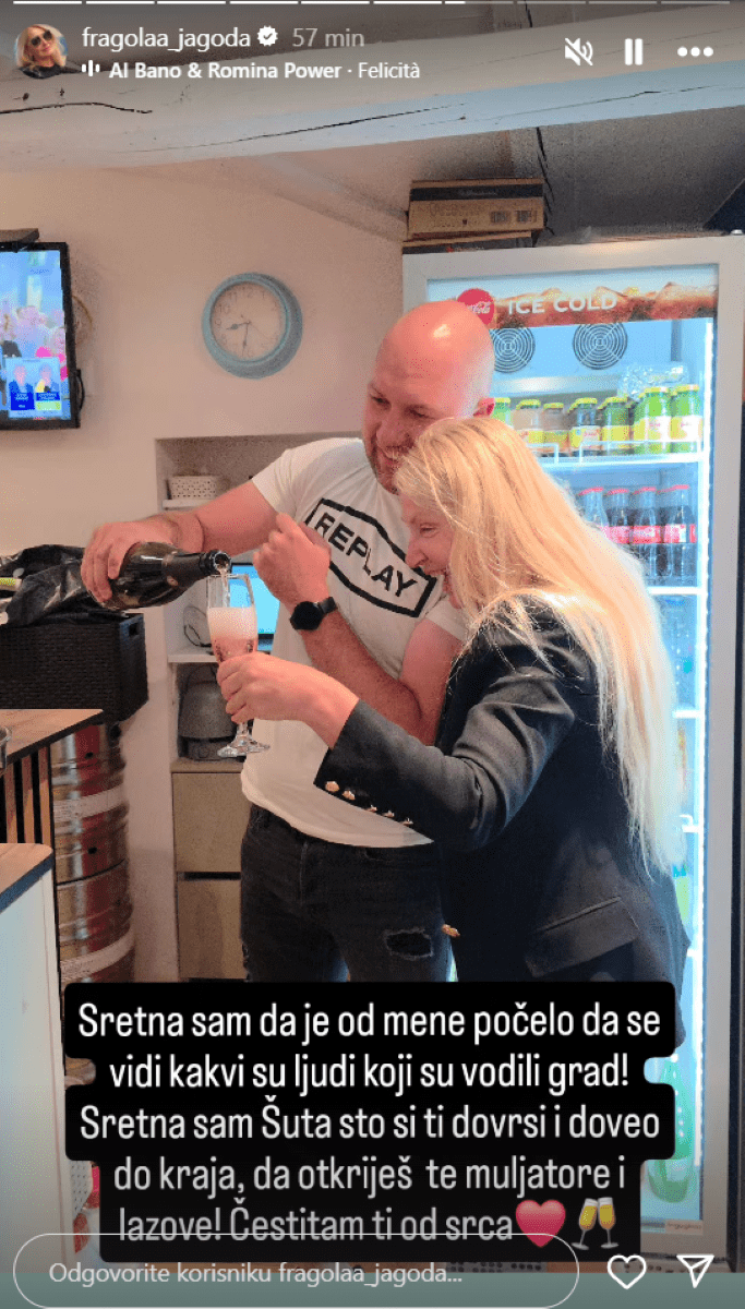 Jagoda je na svojim društvenim mrežama podijelila video s proslave u kojem se jasno vidi oduševljenje zbog Šutine pobjede, ali i poraza aktualnog gradonačelnika Ivice Puljka.