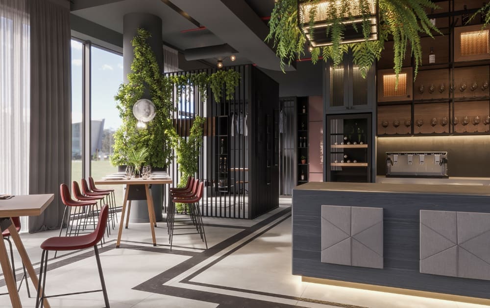 U dizajnu interijera, osim istančane estetike, korišteni su isključivo prirodni materijali, s naglaskom na drvo, a koncept zdrave, suvremene i uravnotežene prehrane prate tople, prirodne boje.