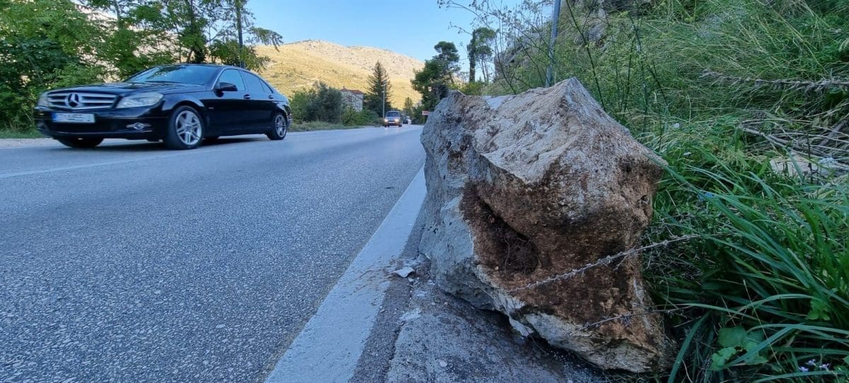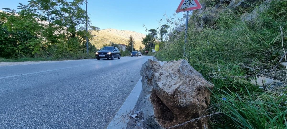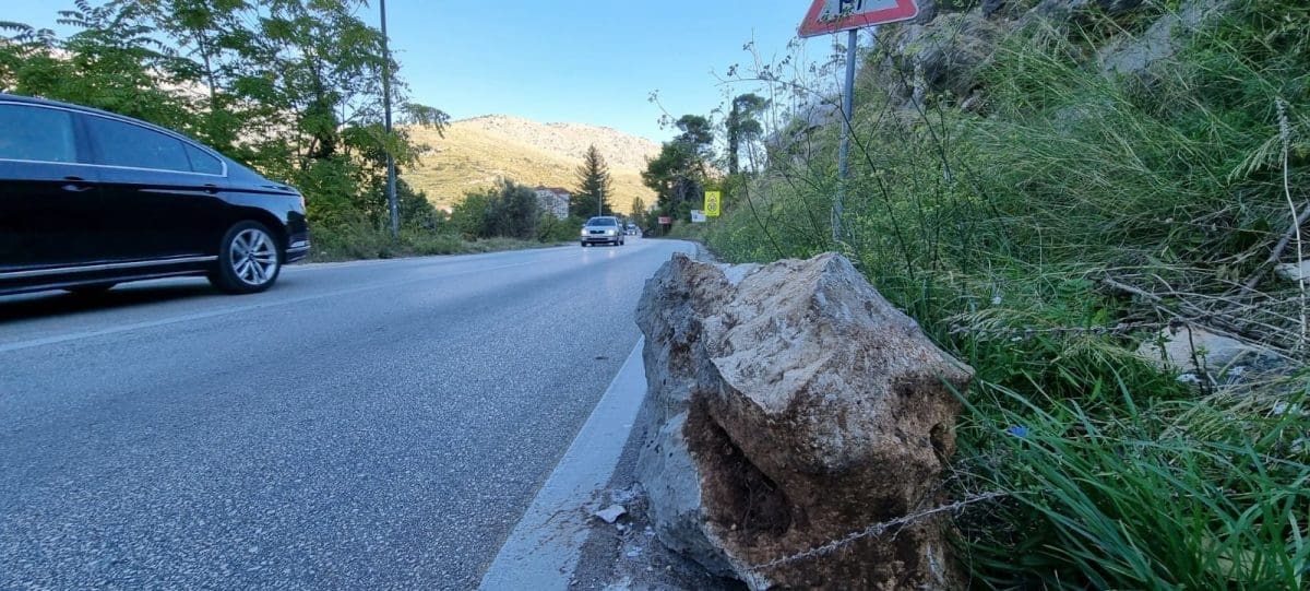 Stavljeni su prometni znakovi upozorenja i tek će sada uslijediti uklanjanje kamena s ceste.