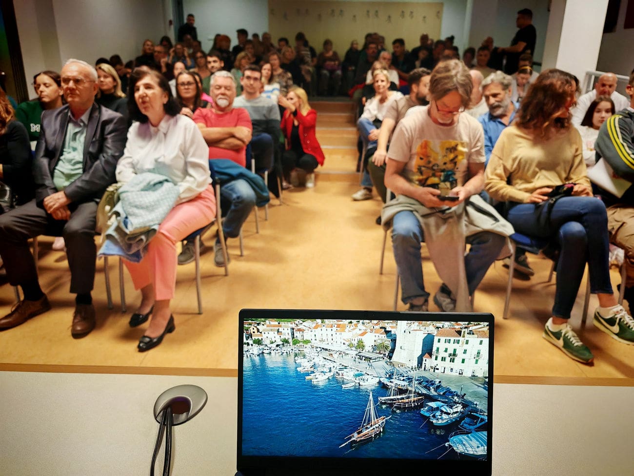 U punoj dvorani Gradske knjižnice Marka Marulića u Splitu posjetitelji su imali priliku pogledati 45-minutni dokumentarni film „Otok Vis“ splitskog putopisca i fotoreportera Jurice Galića Juke koji ih je odveo na putovanje kroz gotovo sve segmente života na jednom od najposebnijih jadranskih otoka.