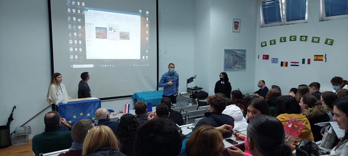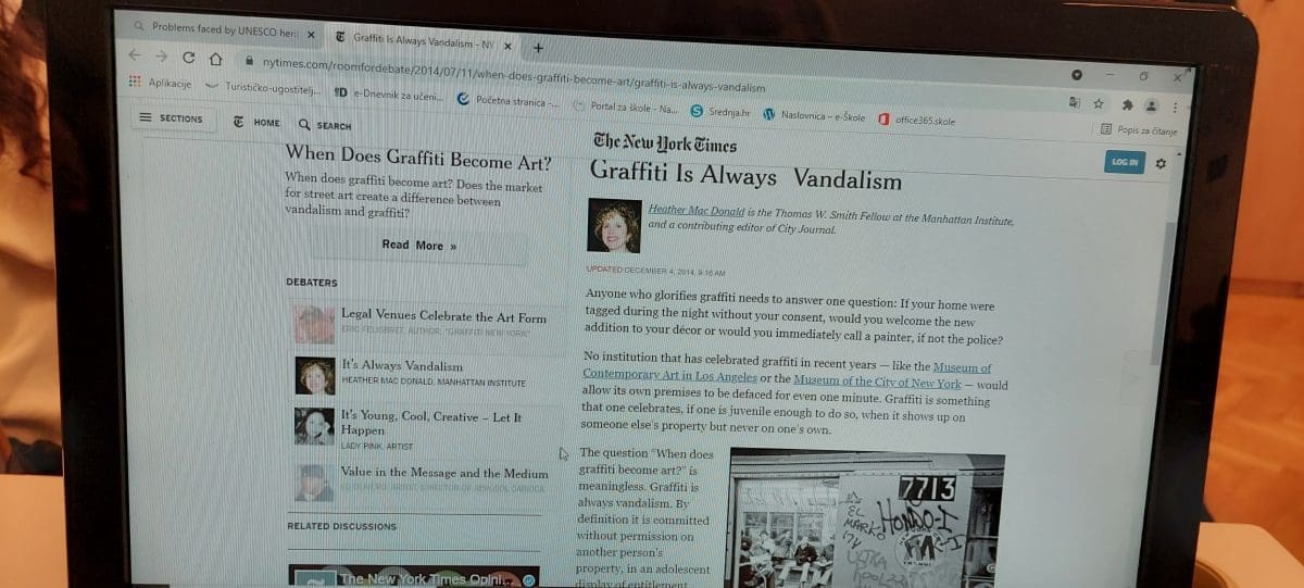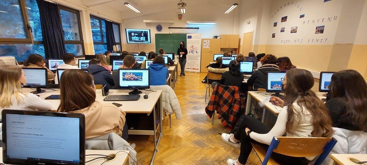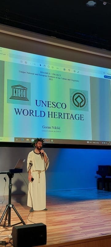 Zajedno sa gostima uživali u predavanju Gorana Nikšića, pročelnice konzervatorskog odjela u Trogiru Jasne Popović, predstavnicima Vatrogasnog društva Trogir i TZ Trogir, razgledavanju Splita, Trogira i Dubrovnika kao gradova čija se baština nalazi na listi UNESCO baštine. Predavanja i radionice bile su na temu upoznavanja organizacije UNESCO, njenom značenju i važnosti u očuvanju kulturo povijesne baštine, na koji način i zašto se baština uvrštava na popis UNESCO-ove baštine, koje opasnosti utječu na njeno očuvanje te na koji način svaki pojedinac može sudjelovati u njenom očuvanju. Sve što su naučili o očuvanju i opasnostima očuvanja baštine su tijekom razgledavanja Dioklecijanove palače, grada Trogira i Dubrovnika fotografirali, a zatim izradili prezentacije koristeći Microsoft Sway , a naslov ETwinning izazova bio je: "Grafiti – ulična umjetnost ili oblik vandalskog uništavanja elemenata baštine?"
