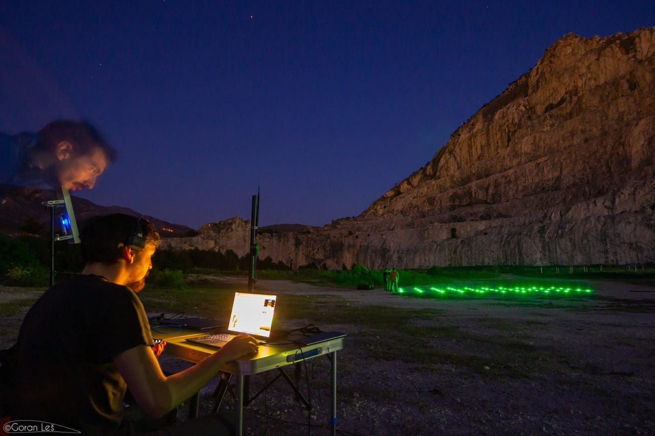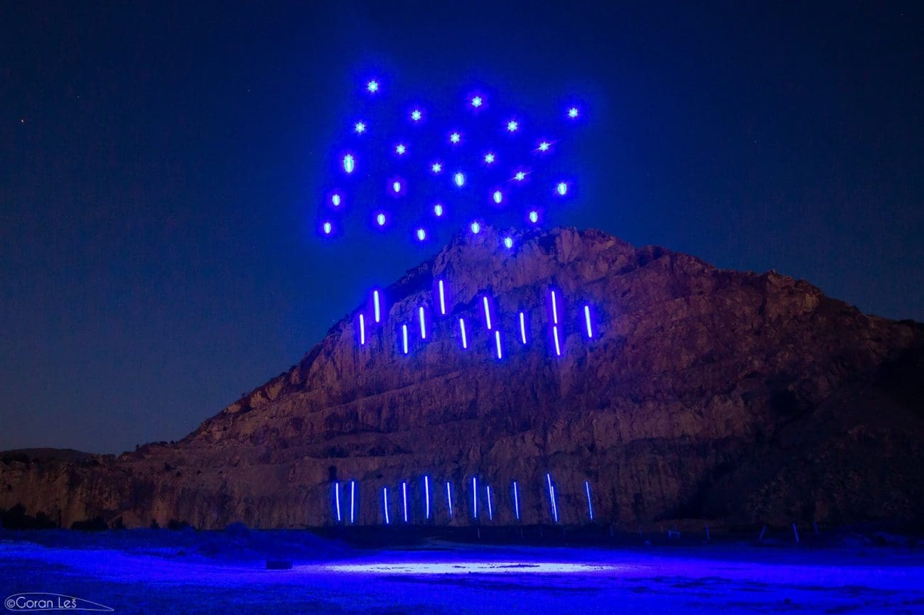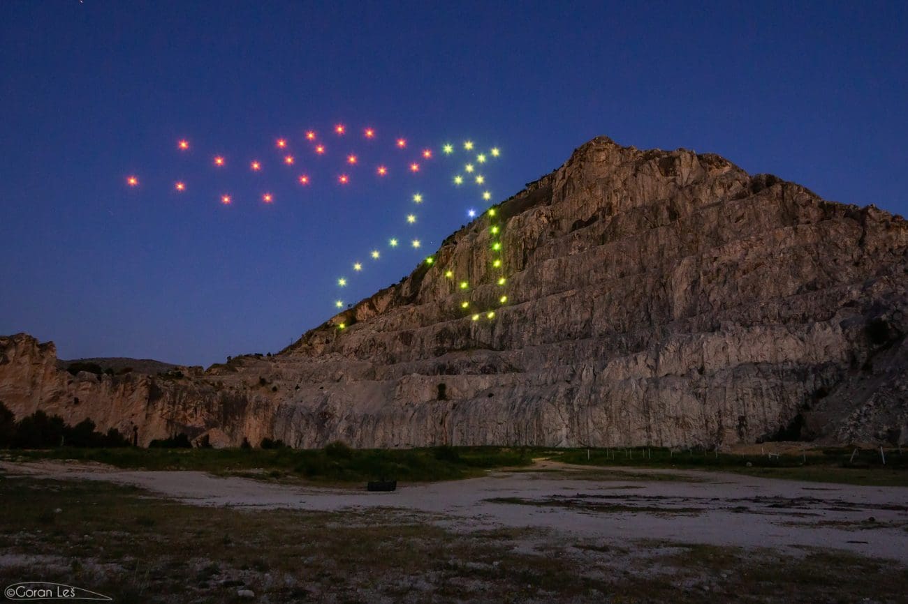 Na platou davnog napuštenog i nesaniranog kamenoloma u Žrnovnici posljednjih su se večeri mogle vidjeti atraktivne svjetlosne kreacije. Radi se o dron-showu u organizaciji splitske privatne tvrtke Light-x.