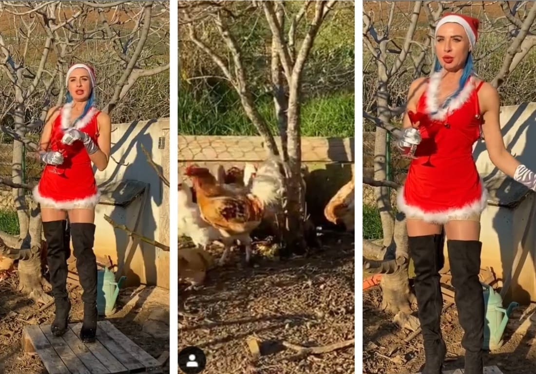 U njemu se pojavljuje u provokativnom seksi izdanju odjevena kao "Baka Mraz". Dok hrani koke u vrtlu poručila je: