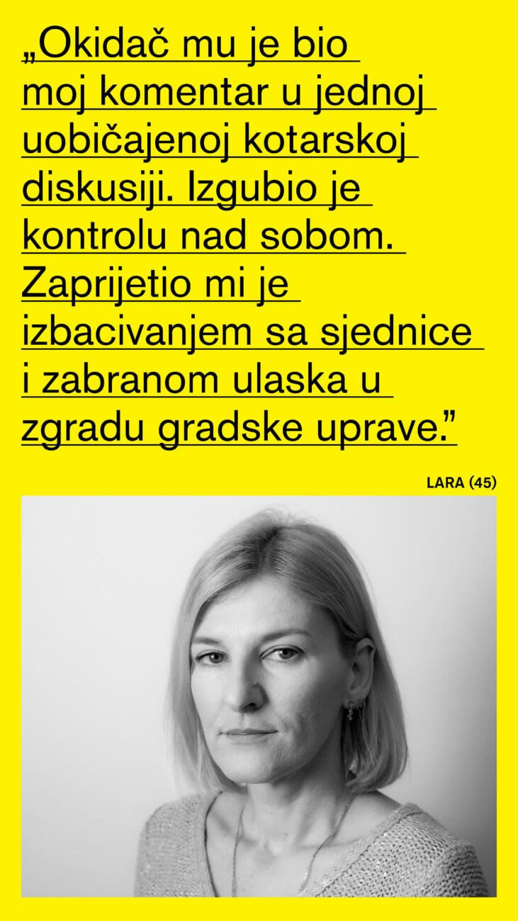 U ponedjeljak je u Porinovoj ulici, tik uz zgradu Hrvatskoga narodnog kazališta u Splitu, na digitalnome oglasnom platnu osvanula nesvakidašnja izložba „Mizogin & ja“. Crno-bijeli portreti Dorotee Marušić Krstulović, Ingrid Pečarević, Lare Bonačić Arapović, Mariane Bucat, Gaie Vidović, Milene Budimir, Marijane Balić Carevski i Ivane Runjić stoje uz njihove osobne zapise o neugodnim iskustvima sa zamjenikom splitskoga gradonačelnika Bojanom Ivoševićem. Kustosica izložbe, arhitektica Mariana Bucat, prikazala je i vlastitu priču, a projekt su bez naknade realizirali fotograf Matko Biljak i dizajnerica Rafaela Dražić.