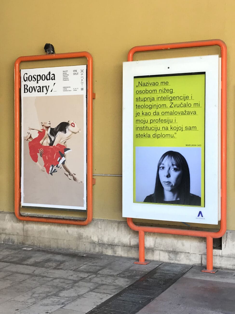 "Dica, čuvajte mir u jeziku – jer riči bole više nego bilo koja šaka. Split je grad di se argumenti vode pošteno, a ne prijetnjama. „Mizogin & ja“ to podsjeća transparentno i direktno, baš onako kako Split zna – na sred ulice, pred samim HNK-om", poručuju organizatori.
