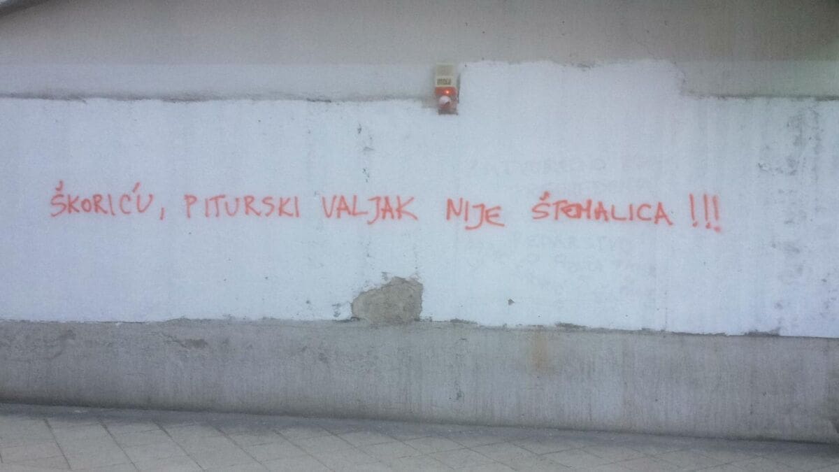Splitski aktivisti ne odustaju. I jutros su crvenim sprejem podsjetili na slučaj ilegalnog plakatiranja u centru grada.