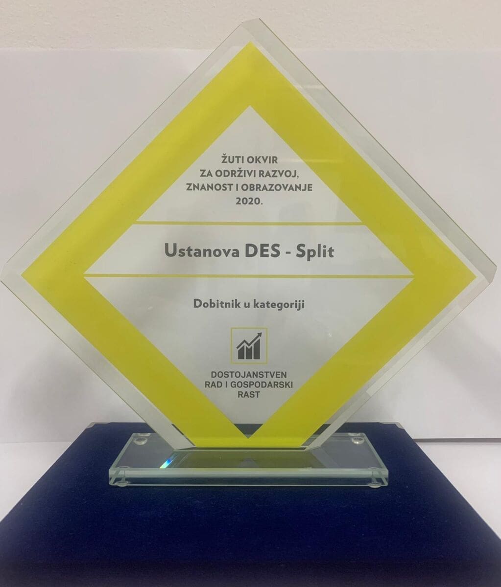 Na maloj svečanosti dodijelili su godišnje nagrade pojedincima, tvrtkama i institucijama koje pridonose Hrvatskoj, a u kategoriji „Dostojanstvenog rad i gospodarskog rasta“ nagradu za 2020. godinu dobila je Ustanova za zapošljavanje, rad i profesionalnu rehabilitaciju i rad DES iz Splita.