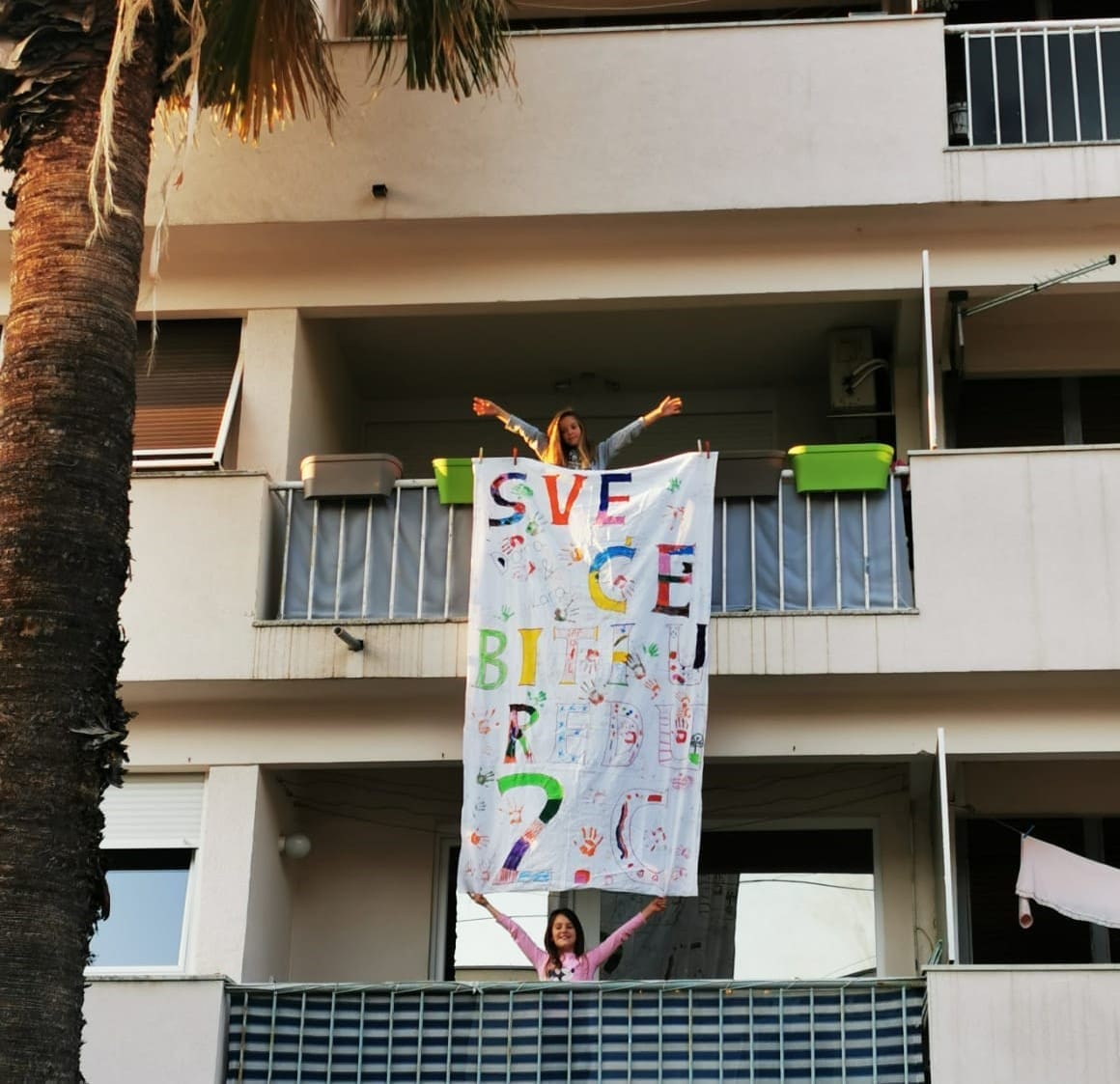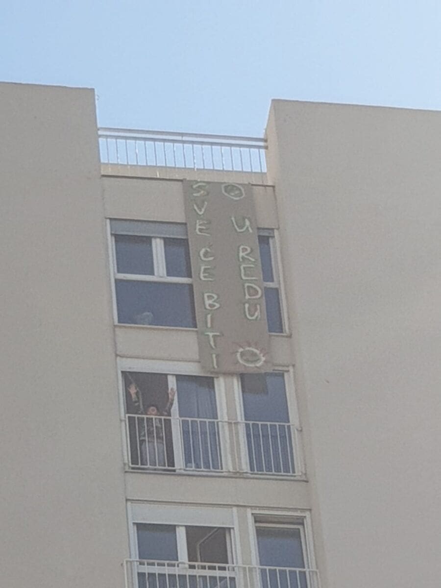 Učenici su poslali poruke diljem grada preko transparenata "Sve će biti u redu".