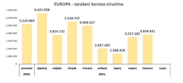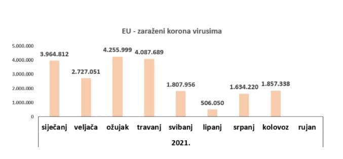 U odnosu na cijelu Europu s cca 770 milijuna stanovnika EU s cca 450 milijuna stanovnika ima povoljnije epidemiološke pokazatelje zaraženih koronom i preminulih od Covid-19.