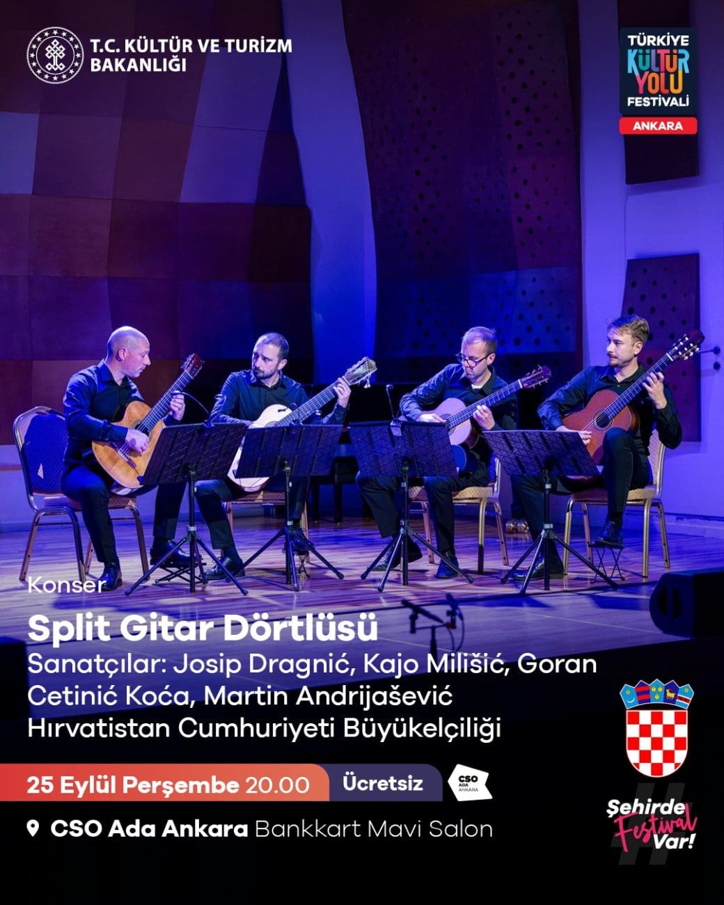 Nekoliko dana kasnije, u četvrtak 25. rujna, splitski gitaristi predstavit će se i turskoj publici koncertom u Mavi salonu predsjedničkog simfonijskog kompleksa u Ankari, u organizaciji Veleposlanstva Republike Hrvatske u Turskoj i tamošnjeg Ministarstva kulture i turizma.