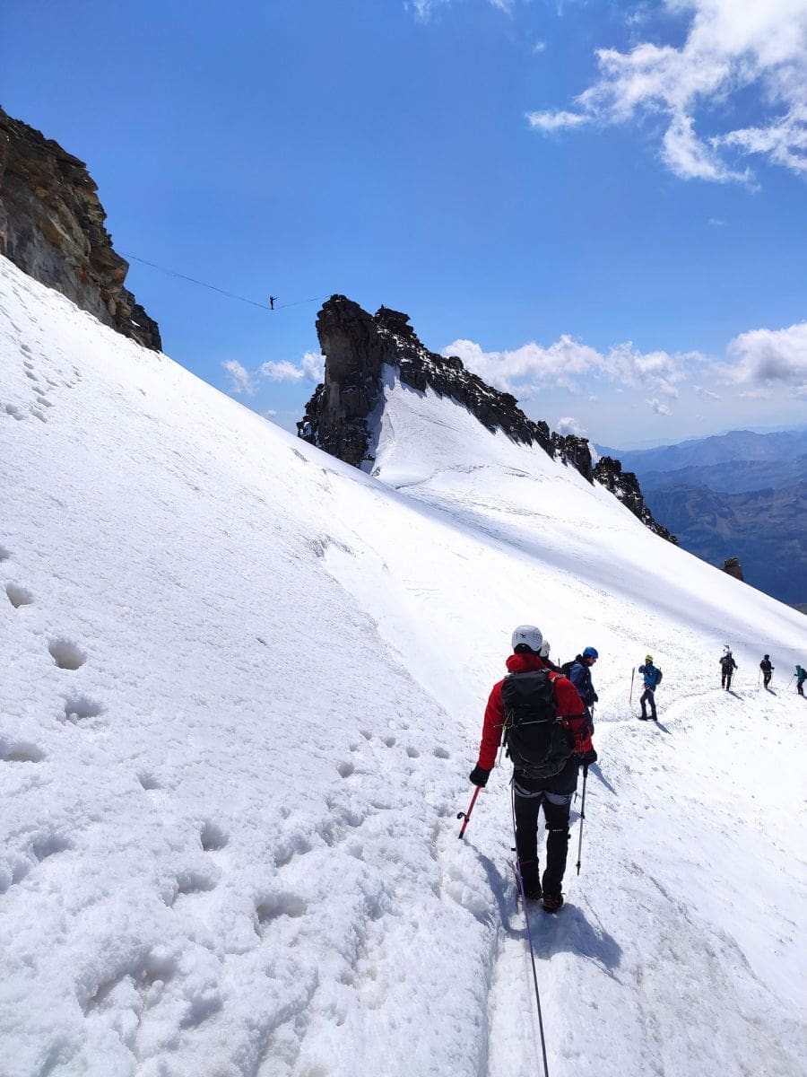 Drugi dan uspona, planinari su krenuli iz doma Vittorio Emanuele II prije svitanja, u 5 sati ujutro. Uspon do samog vrha zahtijeva prelazak preko stijena, snijega i ledenjaka. Tehnički nije zahtjevan ali je potrebna dobra fizička pripremljenost i kondicija.