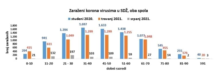 Da bi objasnili uzroke ovako malog broja umrlih i veoma niskog letaliteta u SDŽ u mjesecu srpnju najmanje je bila potrebna dobna raspodjela zaraženih korona virusima.