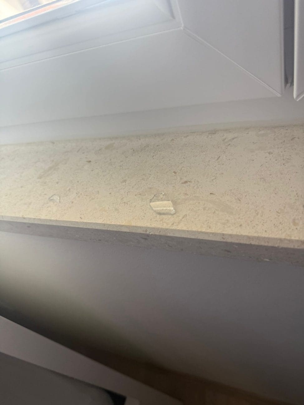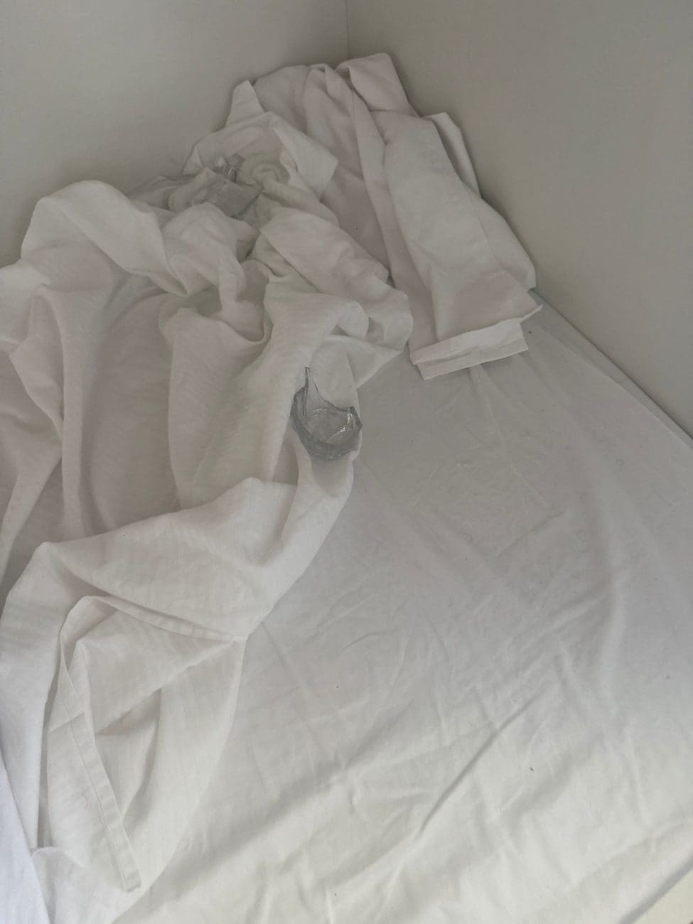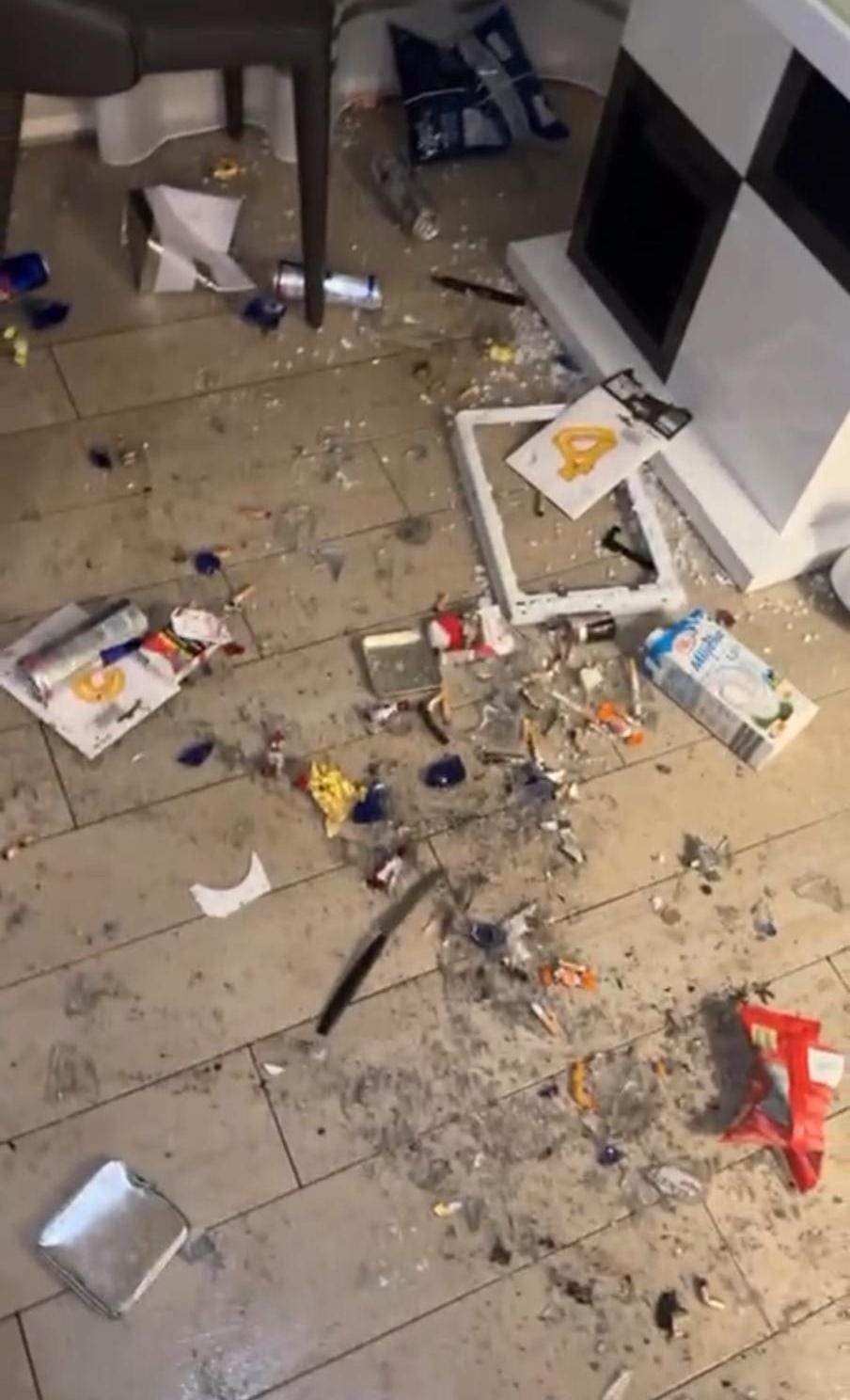 Prizor koji ga je dočekao opisuje kao potpunu devastaciju: razbijeno posuđe, čaše i tanjuri razbacani po podu, zidovima i namještaju, kuhinja uništena, hladnjak oštećen, klizne stijene razvaljene, zavjese zapaljene, a namještaj poput kreveta, stola i stolica potpuno uništen.