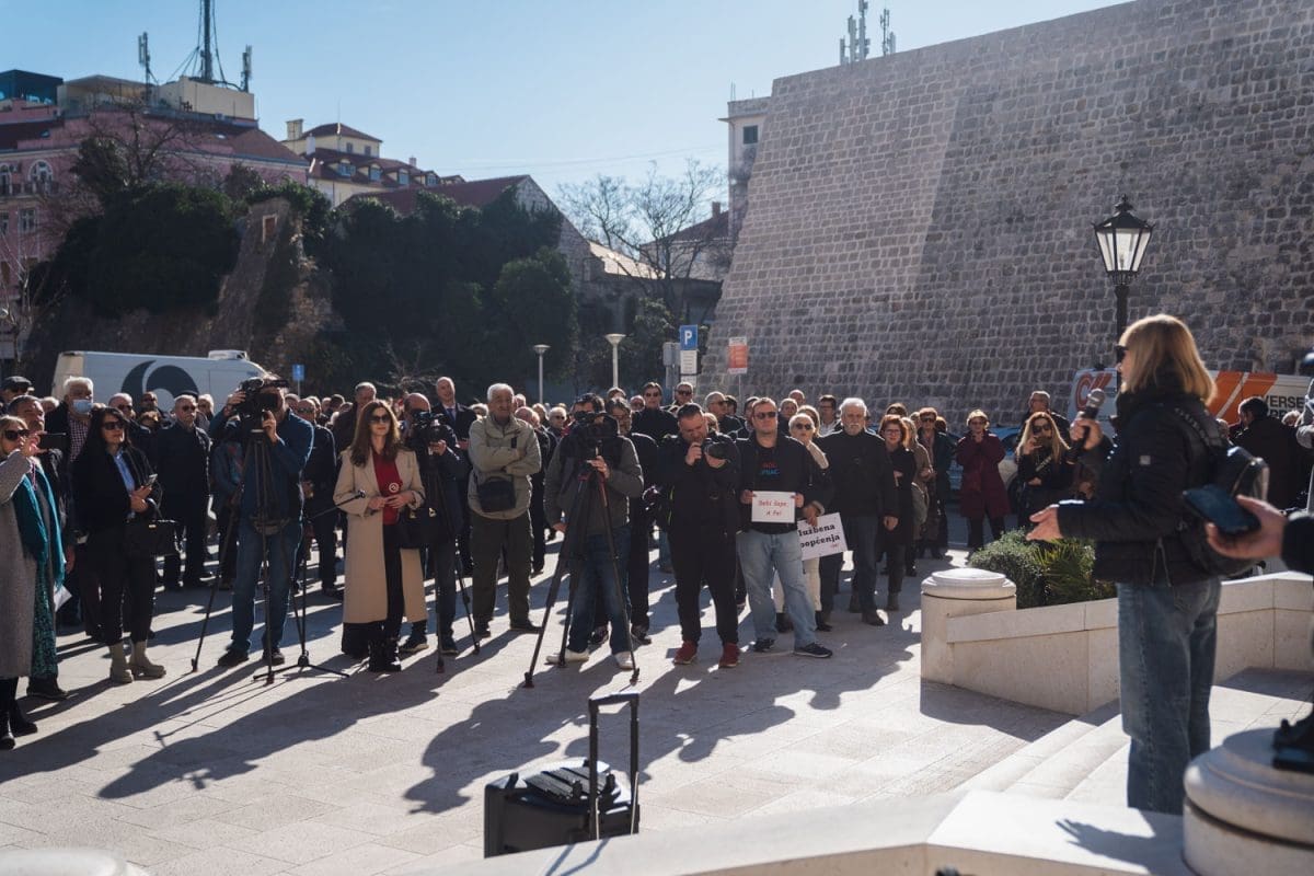 Splitski novinari izašli su na ulicu! Kako smo ranije najavili, prosvjed je organiziran u Split ispred HNK na Trgu Gaje Bulata te u Zagrebu na Markovom trgu.
