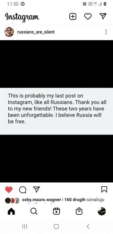 Danas je pak napisao da velik broj Rusa ne podržava ono što posljednjih dana radi njihov predsjednik Vladimir Putin. Zaključio je to po objavama njegovih prijatelja na društvenim mrežama.