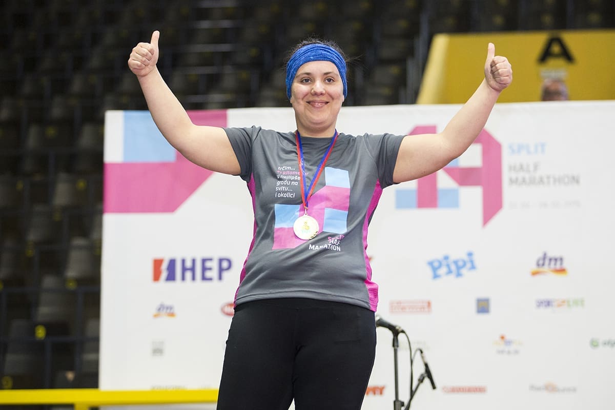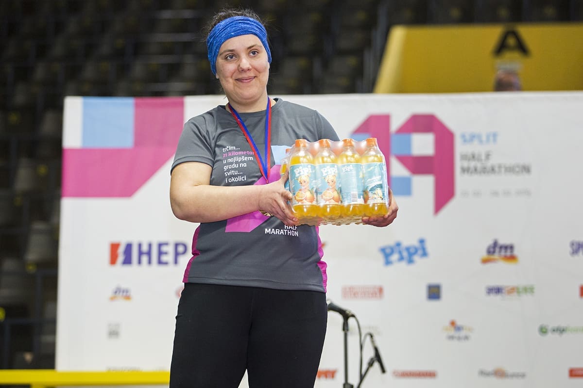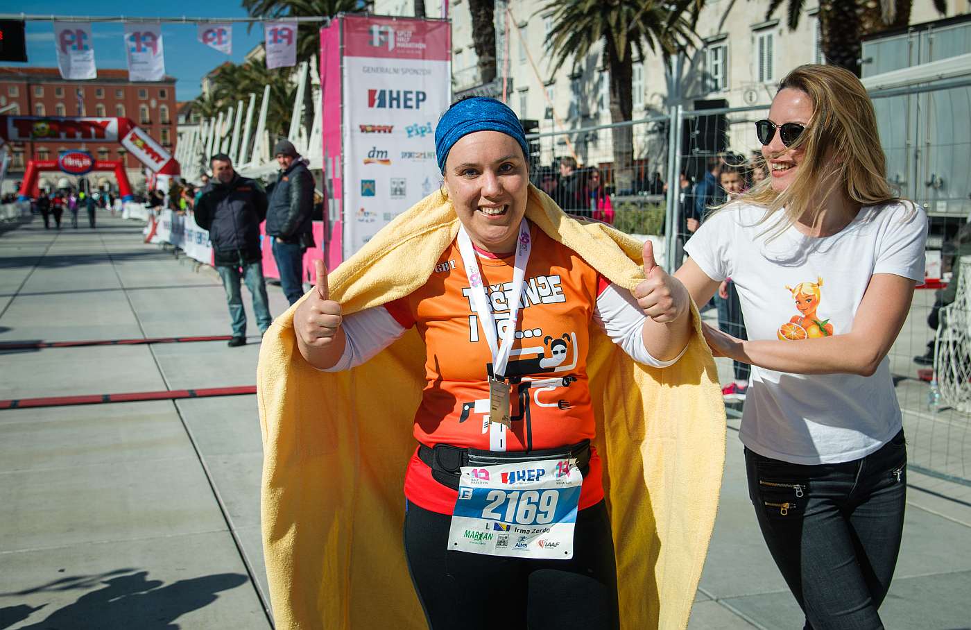 Trkačica Irma Zerdo (35) iz Visokog u BiH, koja je trčala kao dio grupe iz Sarajeva, kroz cilj je prošla točno u podne, tri sata od početka maratona, odnosno u posljednjoj sekundi natjecateljskog dijela polumaratona. Irma je bila oduševljena informacijom da je osvojila medalju i da ide na ceremoniju dodjele. U cilju su je dočekali s ogrtačem, ležaljkom i Pipijem da se malo odmori i osvježi, a na dodjeli je dobila još i gajbu pića da počasti sebe i društvo. Irma je otkrila da se na Splitskom polumaratonu nije opterećivala rezultatom.