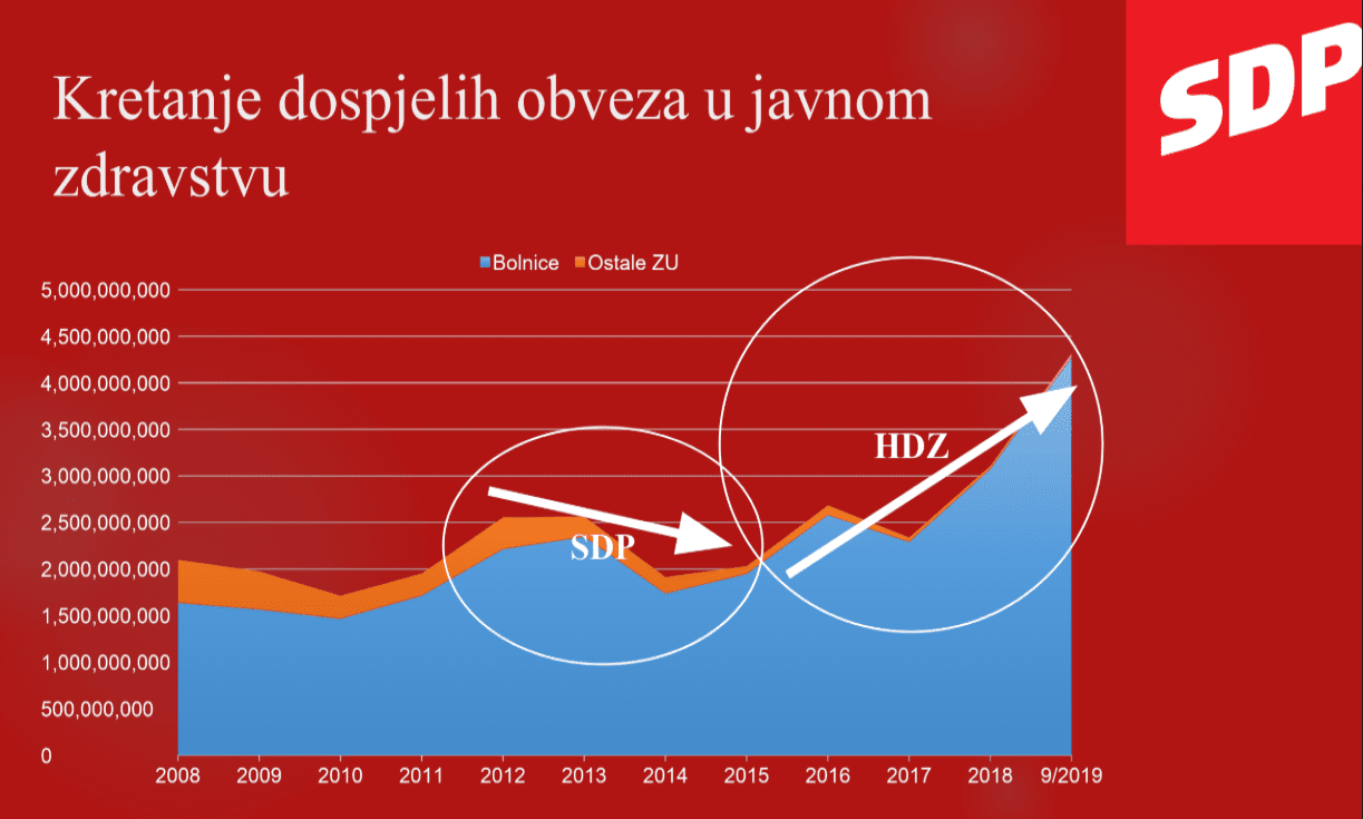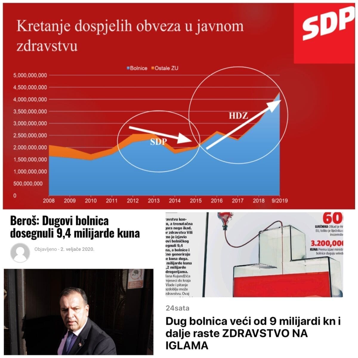 HDZ-ov program za predstojeće izbore najavljuje ulaganje čak 3 milijarde kuna u modernizaciju zdravstvenog sustava i zdravstvenu skrb. Obzirom na lošije ishode liječenja, duže liste čekanja, galopirajući dug zdravstva koji vodi potpunom kolapsu i niti jednu provedenu reformu tijekom posljednjih 5 godina HDZ-ove zdravstvene administracije, u ovu "PR maglu" nitko razuman neće povjerovati, smatraju splitski SDP-ovci.