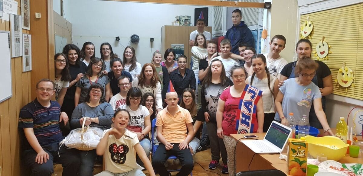 Učenici Graditeljsko – geodetske tehničke škole, okupljeni u Školskom volonterskom klubu Graditelji sreće, u srijedu su, 23. svibnja, posjetili udrugu Down 21 te pripremili zabavni program s korisnicima udruge. Pekle su se palačinke i kokice, gledalo se i navijalo za Hajduka, a vrhunac večeri bile su karaoke. Korisnici udruge, jednako kao i učenici, bili su oduševljeni zajedničkim druženjem koje je potrajalo do kasnih večernjih sati.
