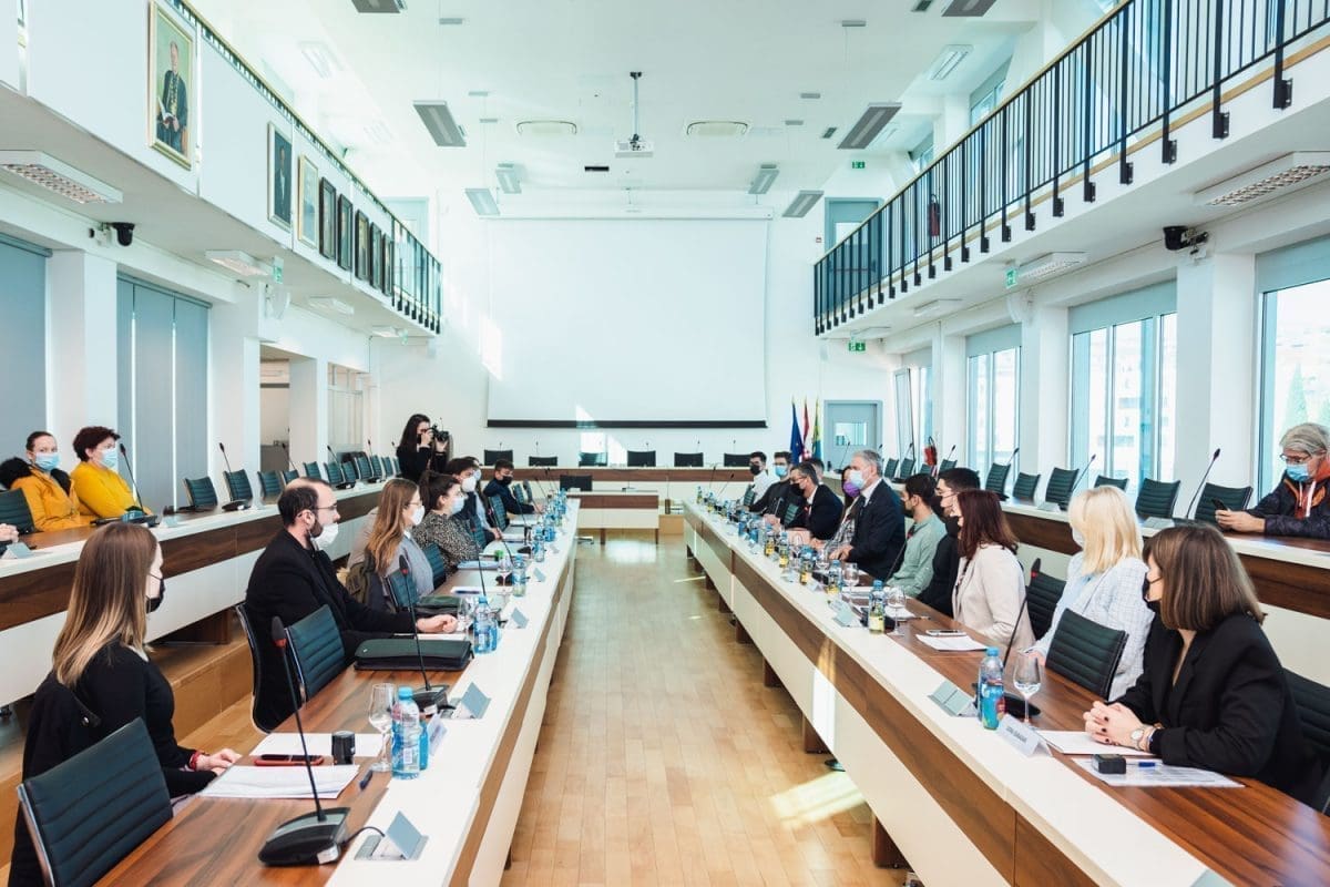 Rektor Sveučilišta u Splitu prof.dr.sc. Dragan Ljutić, predsjednik Studentskog zbora Sveučilišta u Splitu Tomislav Milošević i studenti/ce nositelji/ce projektnih aktivnosti potpisali su u utorak 22. veljače Ugovore o dodjeli nenatječajnih sredstava ostvarenih iz upisnina studenata Sveučilišta u Splitu u akademskoj godini 2021./2022.