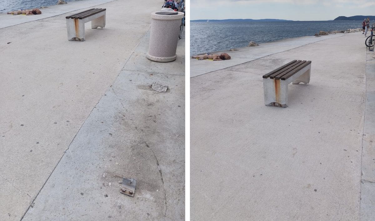 Dodaje da su klupe postavljane uz pomoć viljuškara tako da je sigurno trebalo dosta snage da je se iščupa s njenog mjesta i premjesti.