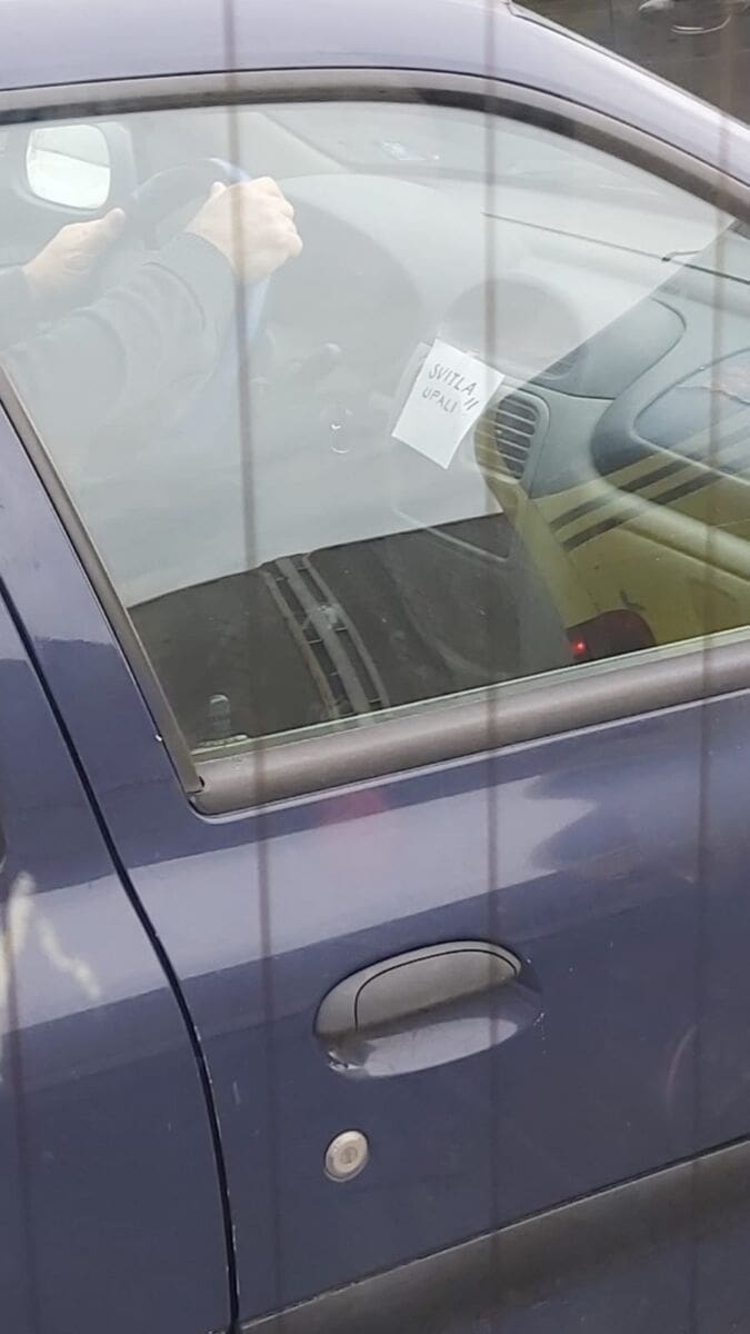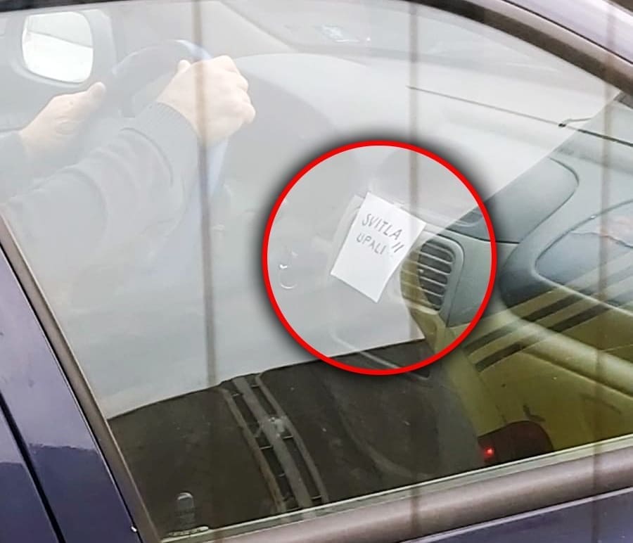 Da mu se ipak ne dogodi da ne upali svjetla, jedan splitski vozač osigurao se na efikasan način. Na papir je napisao "Svitla upali" i zalijepio je natpis desno od volana.