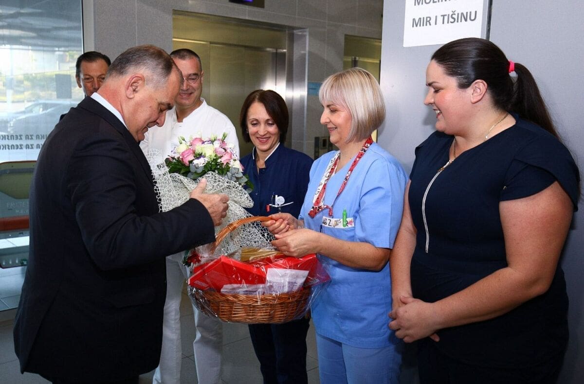 Župan splitsko-dalmatinsku Blaženko Boban prvi dan nove godine tradicionalno je posjetio splitski KBC i tamošnje rodilište. Dočekao ga je ravnatelj KBC-a dr. Julije Meštrović sa svojim timom.