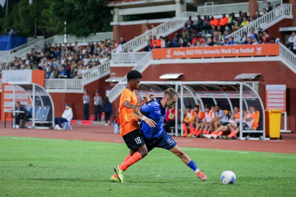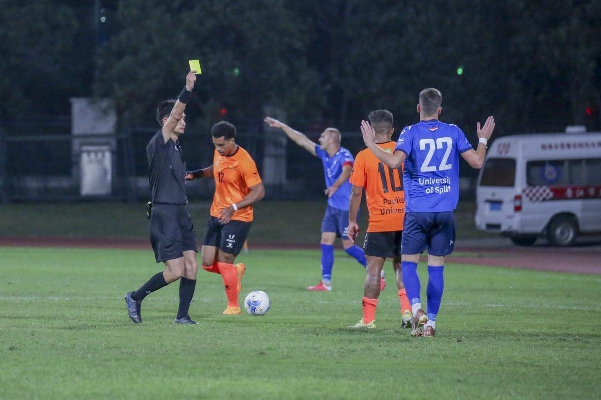 Reprezentacija Sveučilišta u Splitu danas je odigrala drugi susret na FISU Svjetskom sveučilišnom nogometnom kupu u kineskom Jinjiangu protiv brazilskog Sveučilišta Paulista. Prvo je poluvrijeme proteklo bez golova, dok su u drugom obje momčadi zabile dva gola i upisale remi.