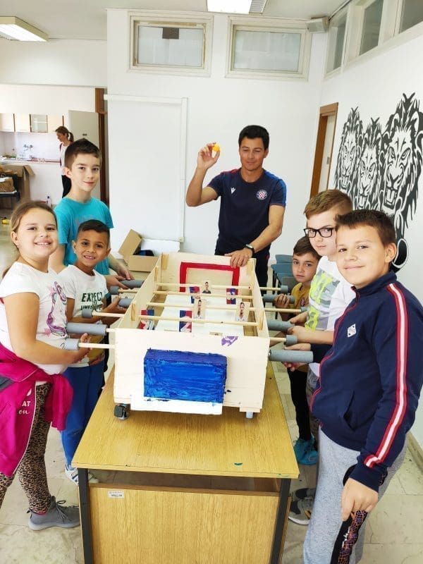 Tehnička radionica je organizirana na način da su djeca, uz mentorstvo učitelja tehničke kulture i predsjednika udruge tehničke kulture "Meštri o' tehnike" Ante Milića, izrađivala i sastavljala jedinstveni stolni nogomet na hajdučki način. Stolni nogomet je izrađen od materijala poput šperploče, stiropora, drvenih letvica, spužve, drvenih šipki, kotačića itd. te uz pomoć adekvatnih alata za izradu. Nakon sastavljanja je obojen u hajdučkim bojama a najzanimljiviji dio je taj da su učenici u stolni nogomet ugradili slike igrača hajduka otisnute na šperploči", poručili su te su nastavili: