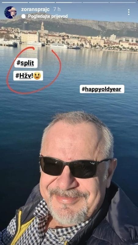 Nešto kasnije Šprajc je na InstaStoryju objavio selfie na kojem je stavio oznaku "HŽV (Hajduk živi vječno)...