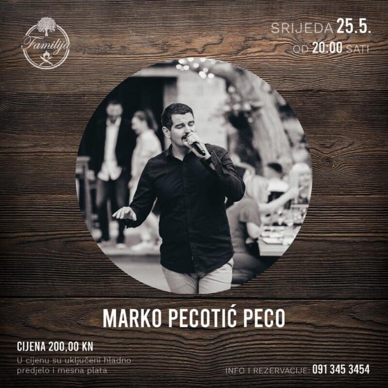 Nakon Matka i Brane program se nastavlja još jednim provjerenim imenom domaće scene. Marko Pecotić Peco i restoran Familija već dugo imaju posebnu kemiju koja se mogla dobro vidjeti na nekoliko Pecinih nastupa koje je imao proše godine u ovom restoranu.