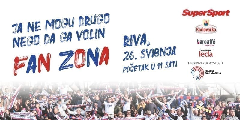 Zbog iznimnog interesa navijača za utakmicu finala SuperSport Hrvatskog nogometnog kupa HNK Hajduk odlučio je u suradnji sa svojim partnerima i sponzorima, Radio Dalmacijom, Karlovačkim i SuperSportom, organizirati fan zonu za navijače koja će u četvrtak biti smještena na splitskoj Rivi.