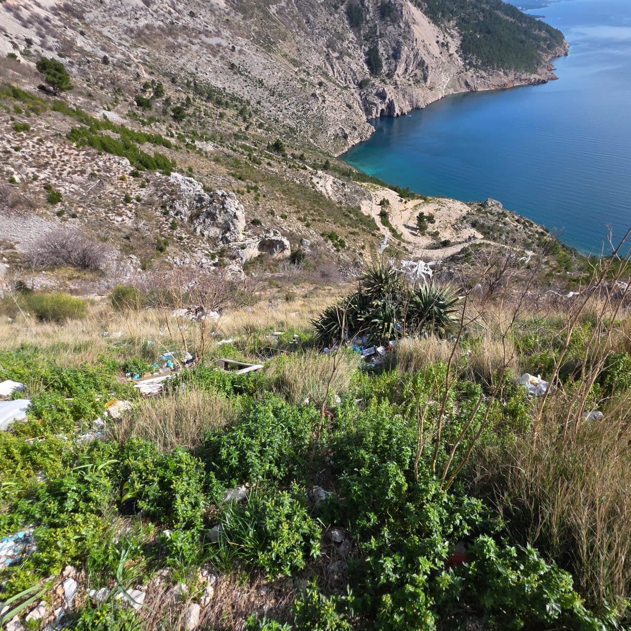 Na fotografijama s terena jasno se vidi kako je smeće ostavljeno uz sam rub prirode, među niskim grmljem i suhom travom, a dio otpada naguran je i oko većih biljaka uz put. Na mjestu koje mnogi smatraju jednim od najljepših pogleda u Dalmaciji, netko je prirodu pretvorio u improvizirano odlagalište.