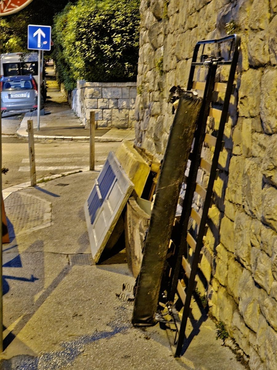 Netko očito vrlo kreativan i temeljit na križanju Istarske i Držićeve ulice u Splitu pa je, pretpostavimo, vlastiti stari namještaj iz stana odložio nasred nogostupa.